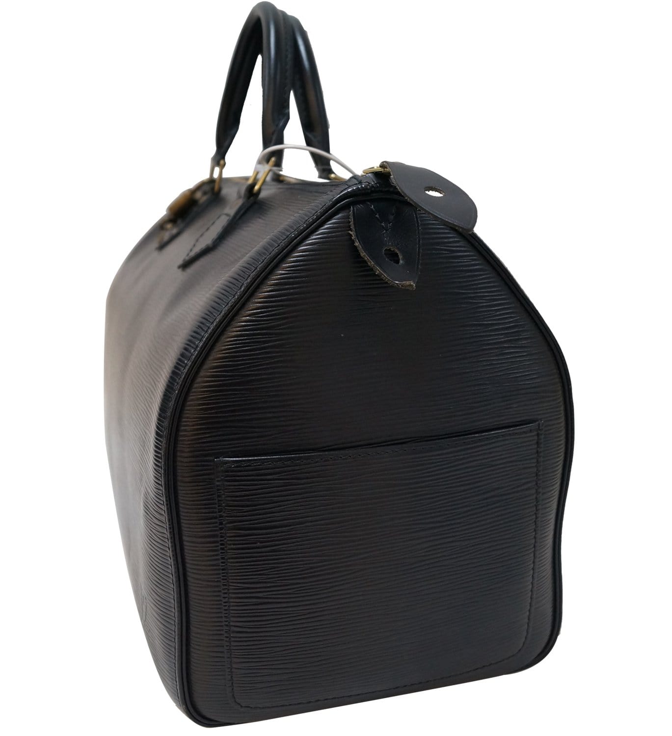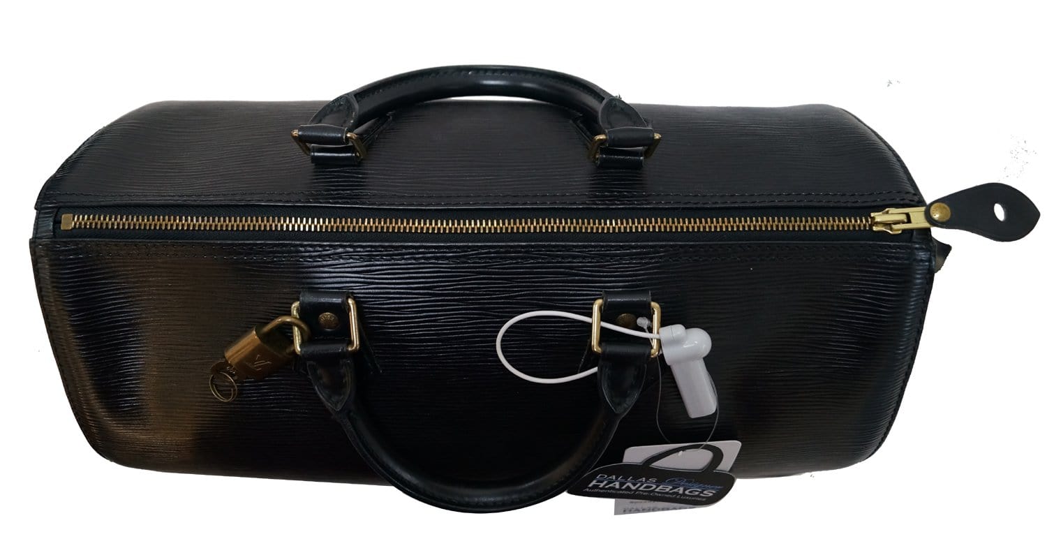 Don't miss out on your opportunity to own this Louis Vuitton Black Epi Leather Speedy 35 Bag! This Louis Vuitton Epi Leather Speedy 35 Bag was styled after the iconic Keepall and has been a popular style ever since. It features beautiful Black Epi leather, silvertone hardware with an ultra-spacious interior to hold all your daily essentials. Now discontinued in Epi leather, this is definitely a classic and luxurious piece of Louis Vuitton that will never go out of style!