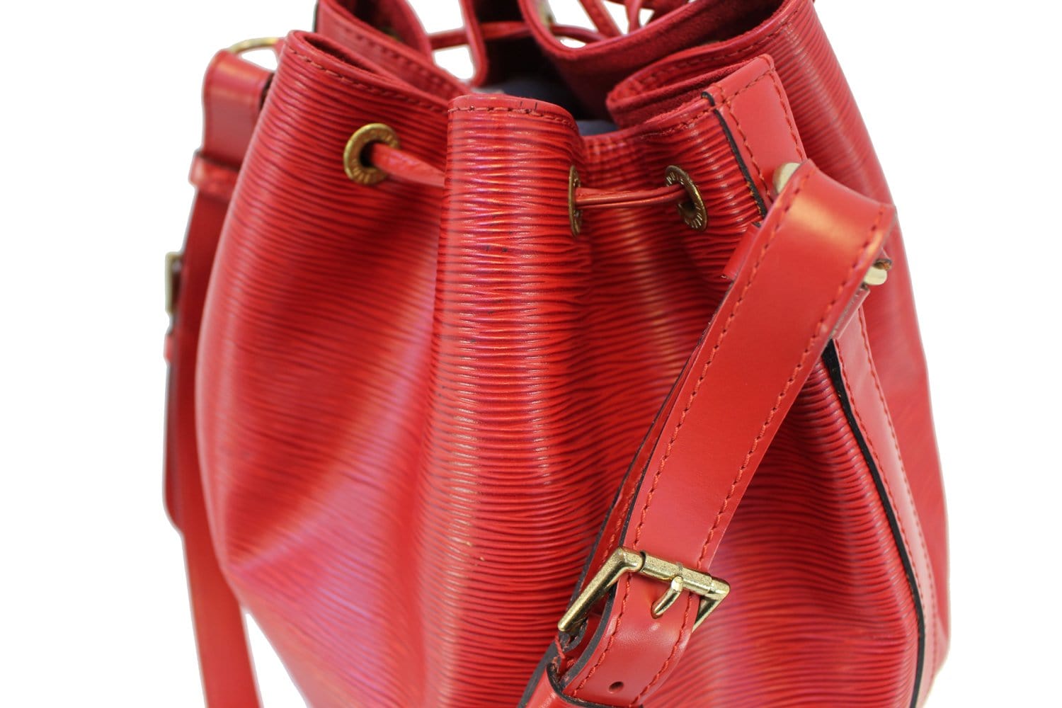 The Louis Vuitton Red Epi Leather Large Noe Bag is a timeless piece that will never go out of style. With its ultra-spacious interior and leather drawstring closure, this sophisticated and durable bag is perfect for everyday use. It was originally created in 1932 to carry five bottles of Champagne. This is the largest size of the Noe family and has been discontinued in Epi leather.