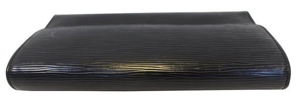 This stylish clutch wallet is finely crafted of Louis Vuitton signature textured epi leather in classic black. The wallet features a frontal half flap that opens to a black cross-grain leather interior with card slots, patch pockets and a currency flap.