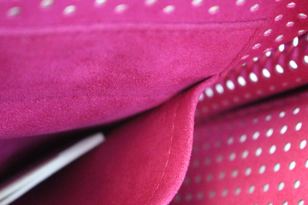 Don't miss out on your chance to own this spectacular and limited edition Louis Vuitton Fuchsia Monogram Perforated Musette Bag. A definite fave for LV collectors everywhere, this lovely creation has the iconic monogram canvas that is perforated and lined with Alcantara lining. It features a beautiful decorative lock detail to assist in closing. This coveted bag from the 2006 Spring/Summer collection is a must-have for all Louis Vuitton collectors everywhere.