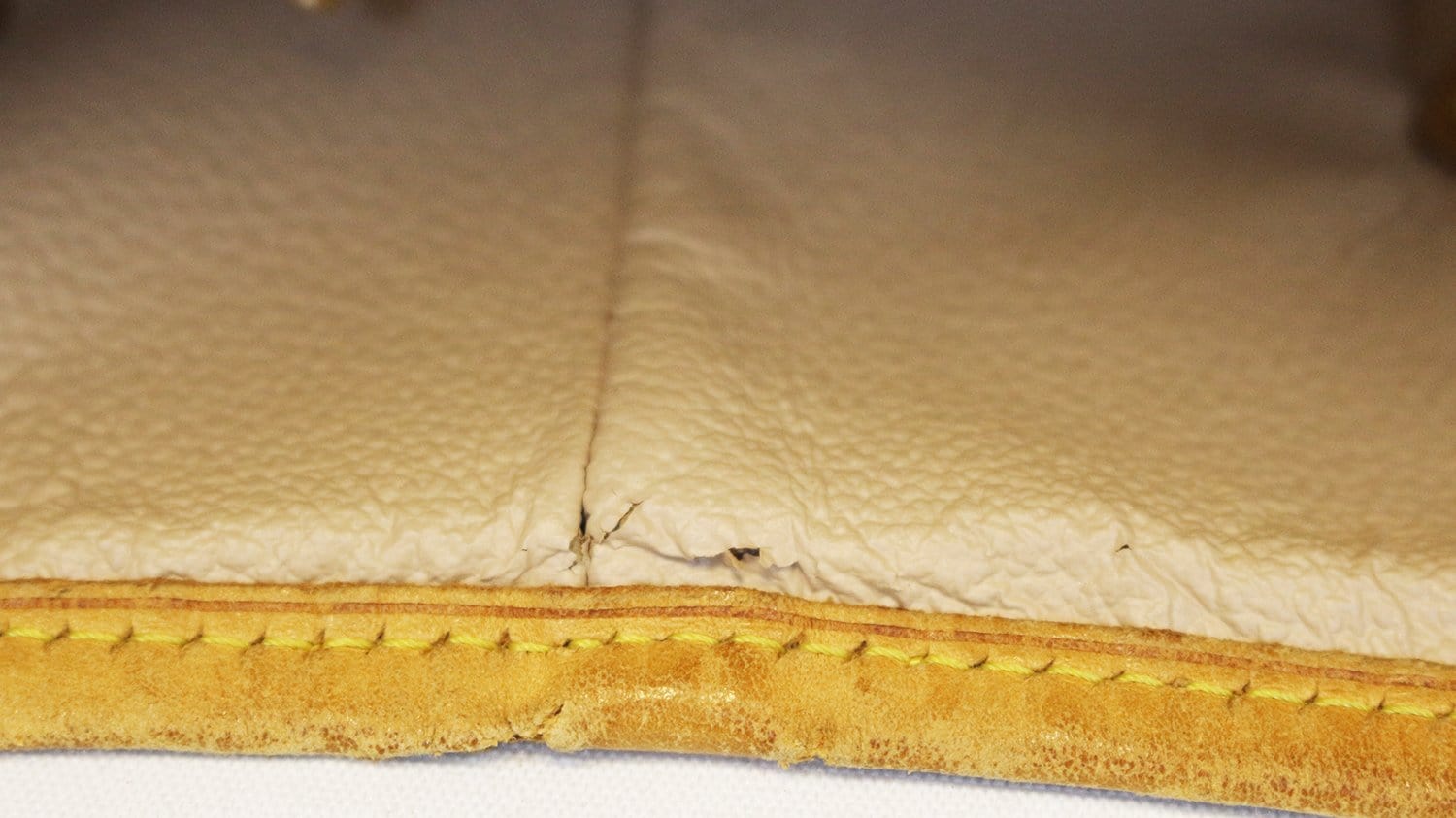 Leather piping: Tearing, cracks, dirt, scratches, visible signs of use.