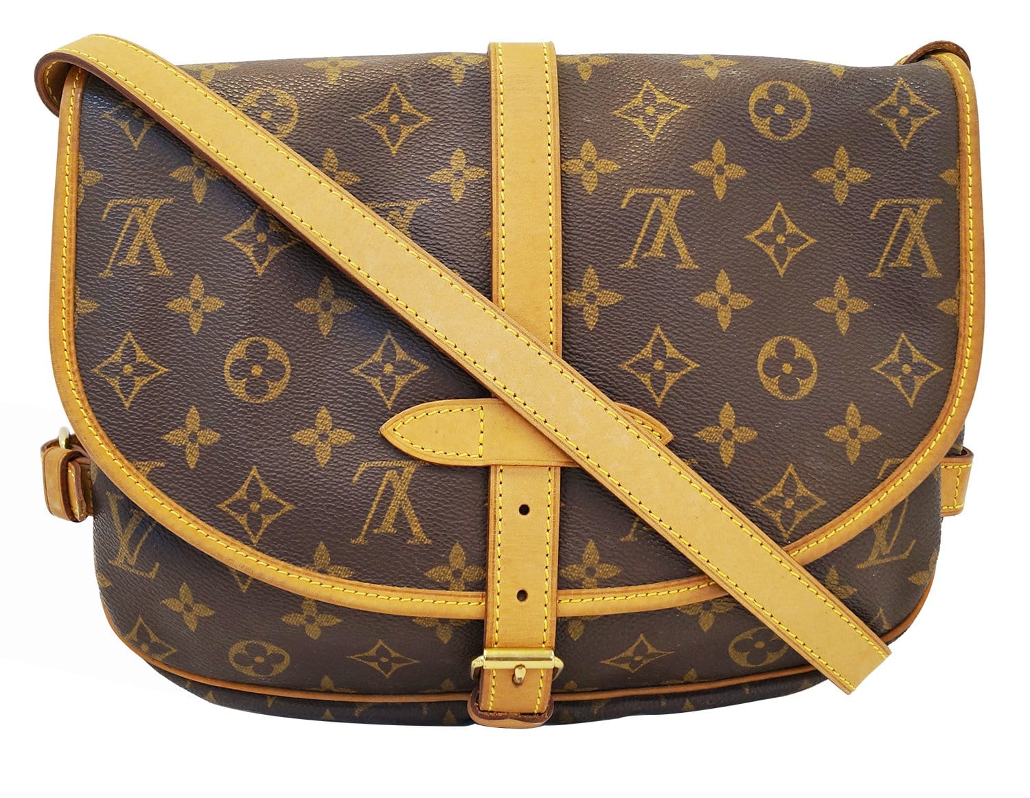 This Louis Vuitton Monogram Canvas Saumur 30 Messenger Bag will be your new favorite bag. With its chic saddle design, double compartment each with a buckle closure and adjustable long shoulder strap, this classic design of Louis Vuitton will never go out of style.