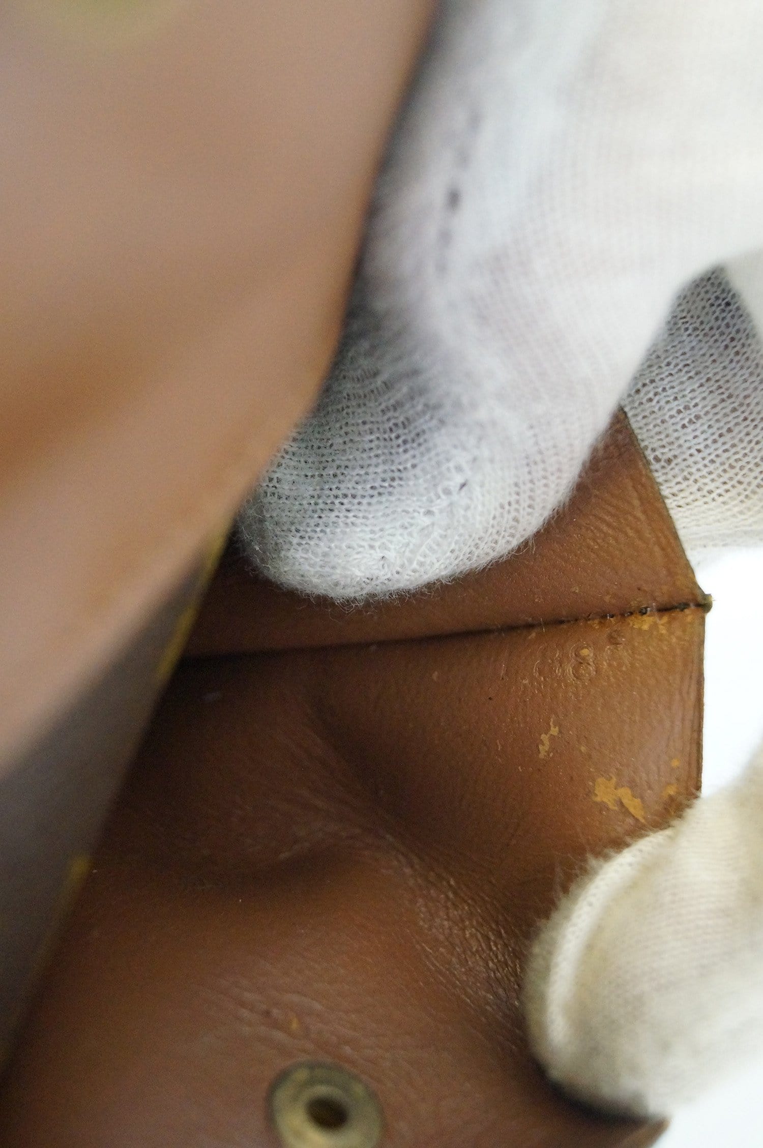 Visible Scratches, rubbed corners, leather tanning darkening. inside stains |