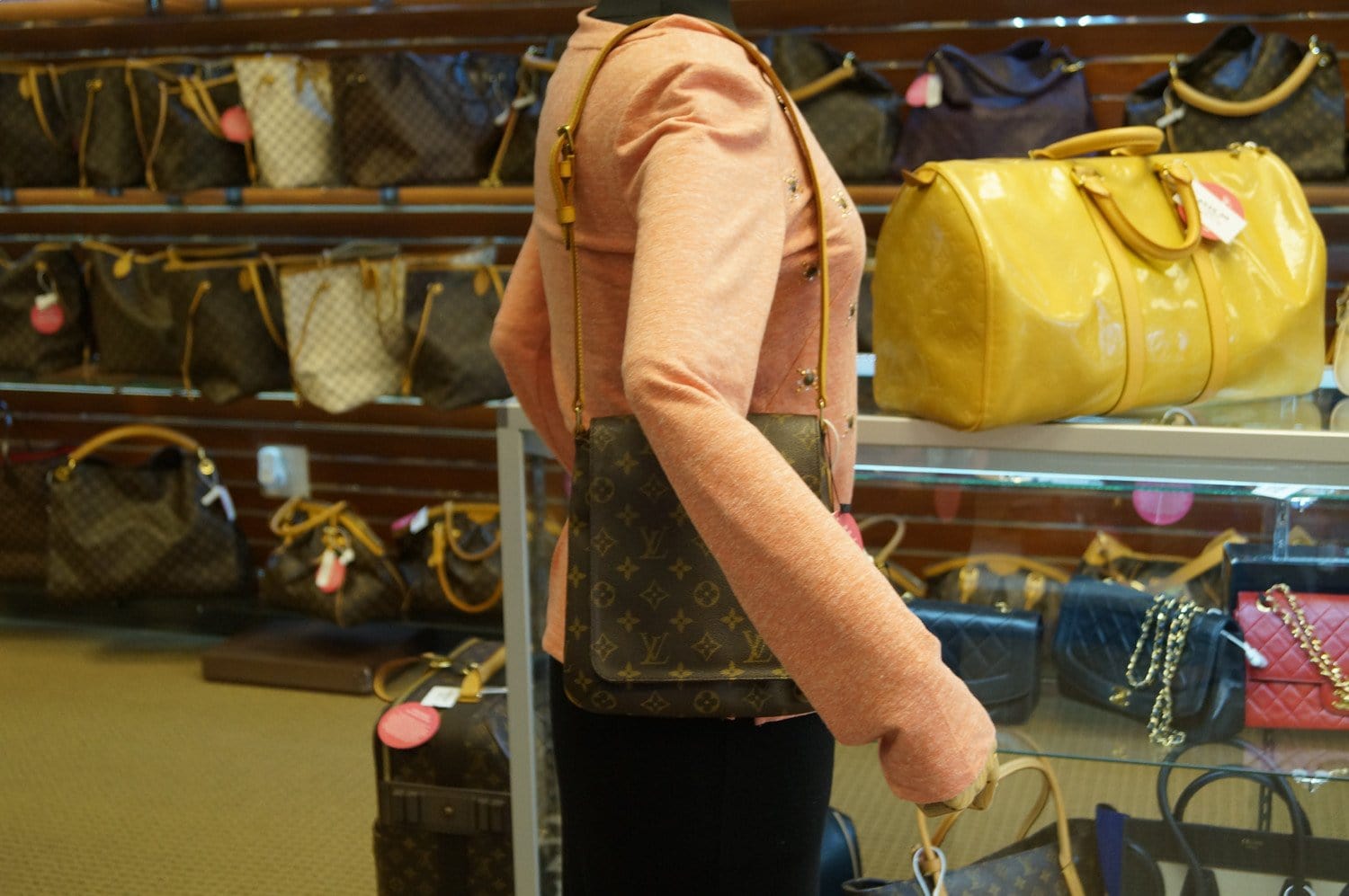 The Louis Vuitton Monogram Canvas Musette Salsa w/Shorter Strap Bagis an elegantand sleek looking bag. It comes with a versatile adjustable leather shoulder strap but is not long enough to wear cross-body. Perfect if you're looking for something feminine and lightweightto hold all your girly essentials.