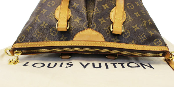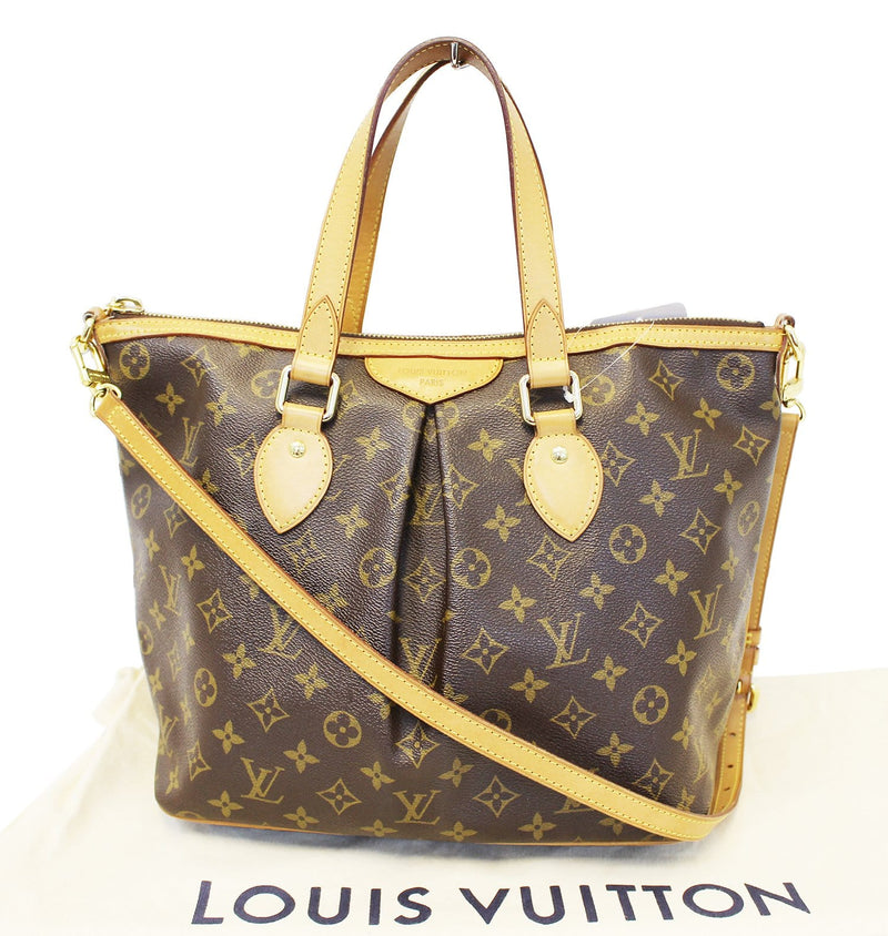 This newer styled Louis Vuitton Monogram Canvas Palermo PM Bag is the one for you. It features stylish details such as inverted pleating and a goldtone zipper LV pull. There is also a detachable and adjustable long shoulder strap that can be worn on the shoulder for hands-free convenience.