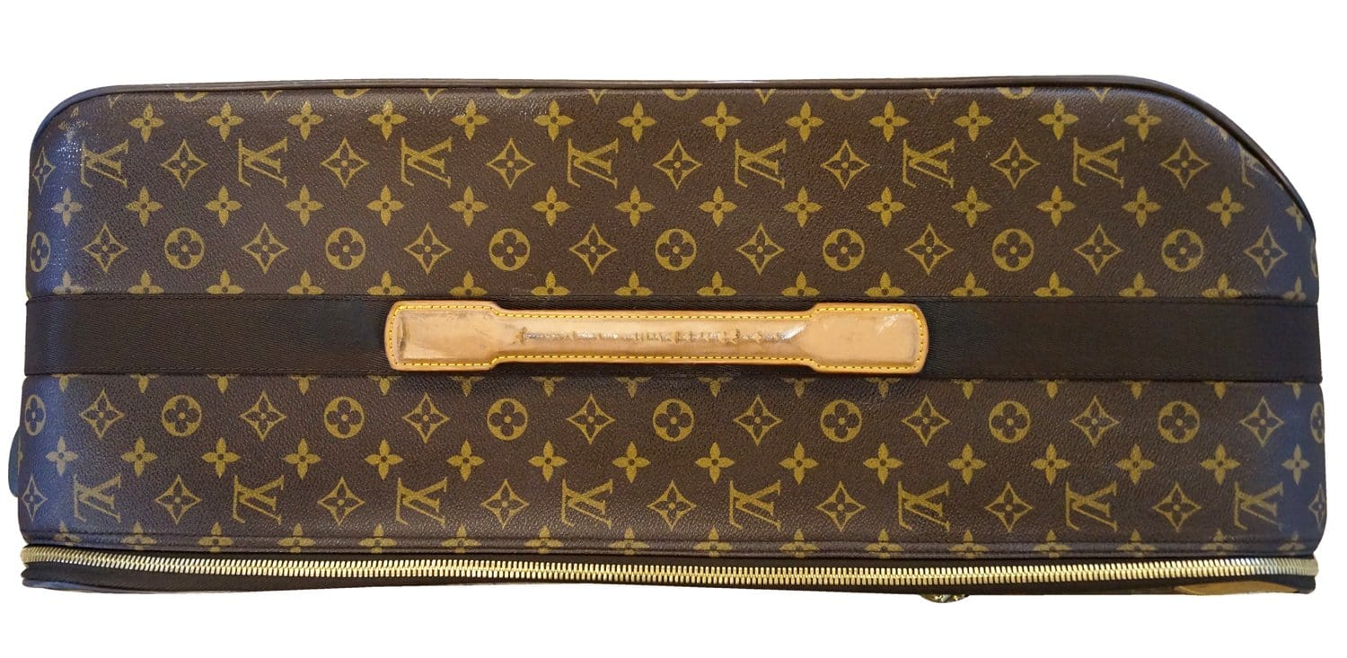 Louis Vuitton has been making world class luggage since 1896 and the Pegase 65 carries on the tradition of style and luxury. The largest size of the Pegase family, the Pegase 65 features Louis Vuitton's trademark durable Monogram coated canvas with cowhide leather trim. Smooth, noiseless wheels and leather padded retractable handle provide comfort after a long flight.
