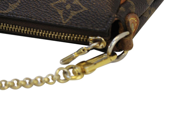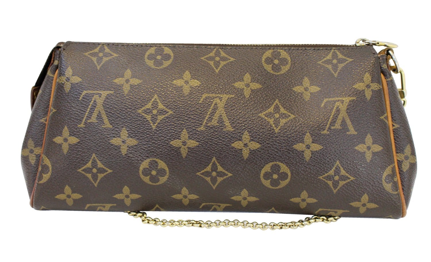This elegant Louis Vuitton Monogram Canvas Eva Clutch Bag is ideal for holding your cosmetics and girly essentials in a fun and elegant manner. The chain strap can be converted to a wrist strap. Whatever you're mood is for the night, this bag is the perfect accessory.