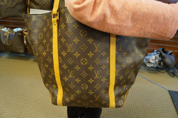 This ultra rare Louis Vuitton Monogram Canvas Sac Shopping Tote Bag has fashion and functionality all rolled into one. With its classic shape, leather trim and roomy capacity, it is perfect for taking to the office or going shopping. You won't want to leave home without it!