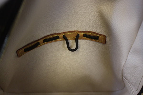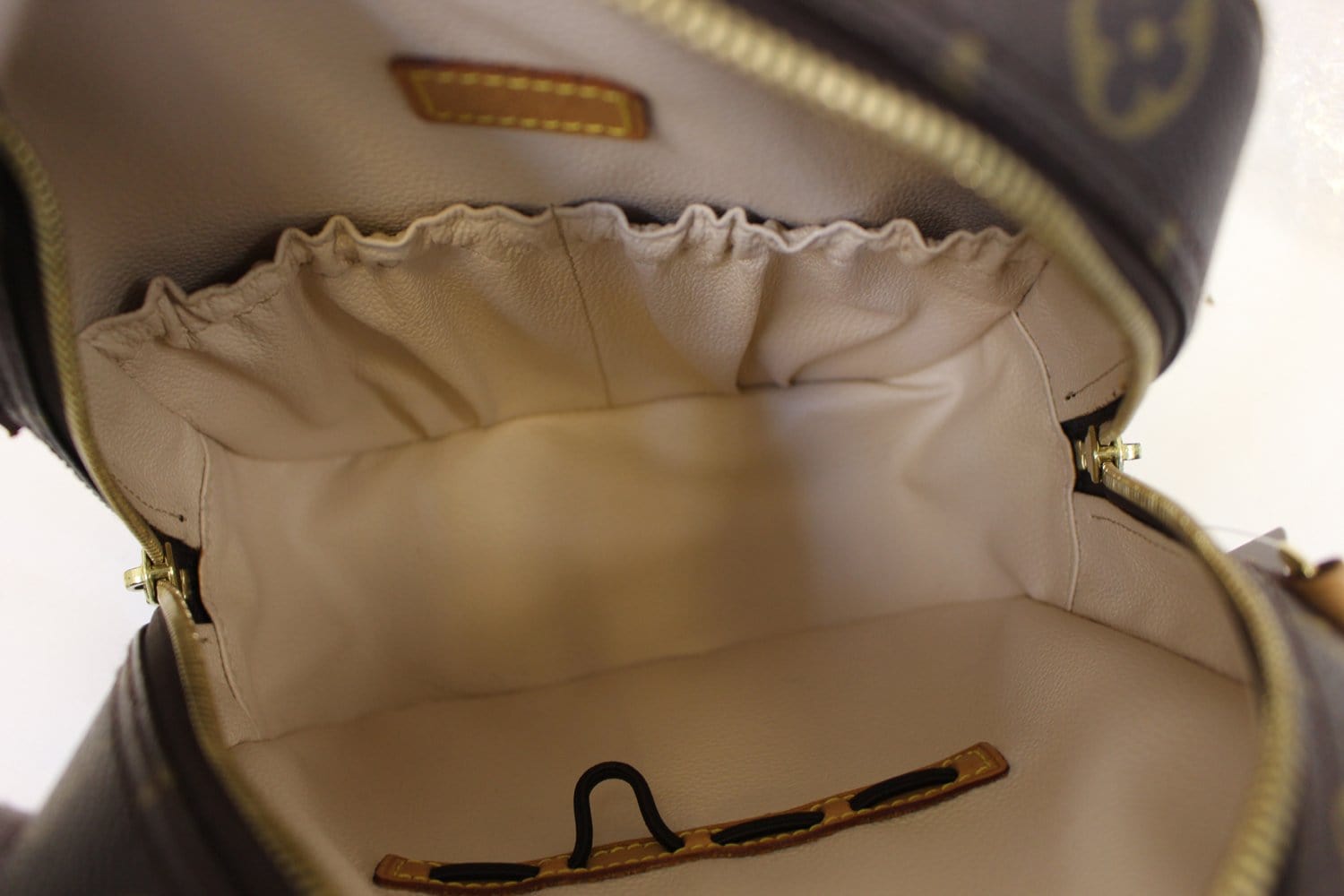 The Louis Vuitton Spontini is a chic, modern bag perfectly suited for city or travel. Hidden inside the elegant, squared silhouette are pockets and elasticized holders for keeping your beauty essentials nicely organized and within reach. It features a square shape and two leather top handles.