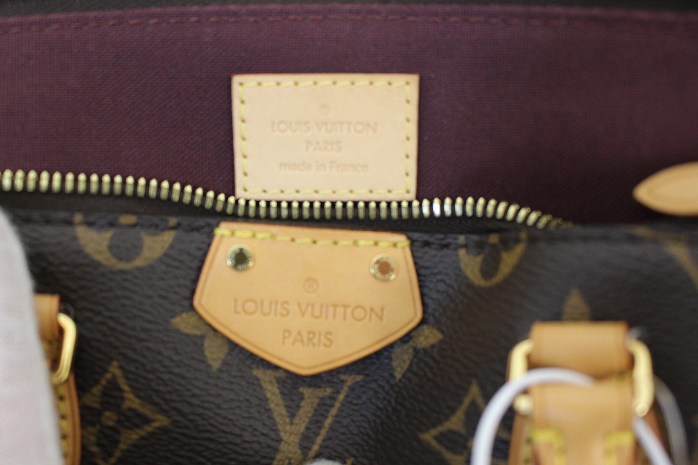 The functional and fabulous Turenne PM tote is a newer creation from the house of LV. Featuring structural front pleats on the Monogram and dual cowhide leather top handles as well as an adjustable strap, this bag has the convenience you want as well as the style. A single zipper opens to reveal a burgundy textile lining that has three flat pockets for easy storage of your essentials.