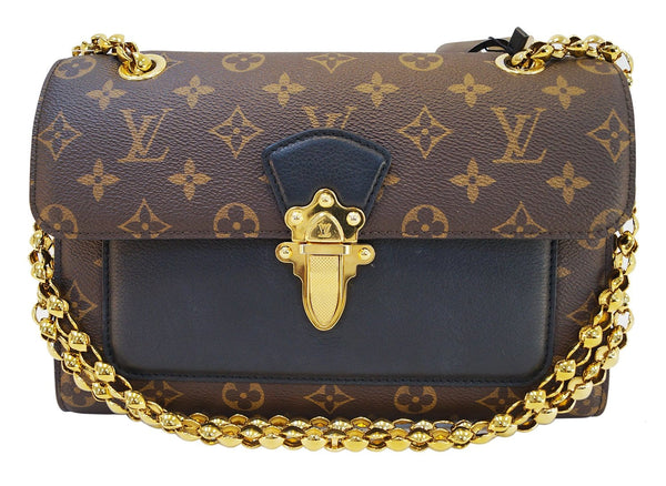 The Victoire bag from Louis Vuitton showcases the brand's affinity for their historic trunks. Featuring signature Louis Vuitton Monogram coated canvas with colourful calfskin leather, the slide-lock on the front is a reinterpretation of the fashion house's classic designs. The Victoire is both modern and classic, with a gleaming chain strap that allows you to carry this bag from day to night.