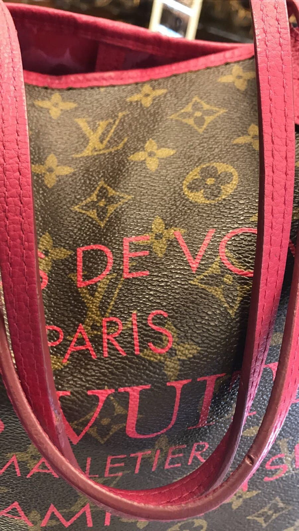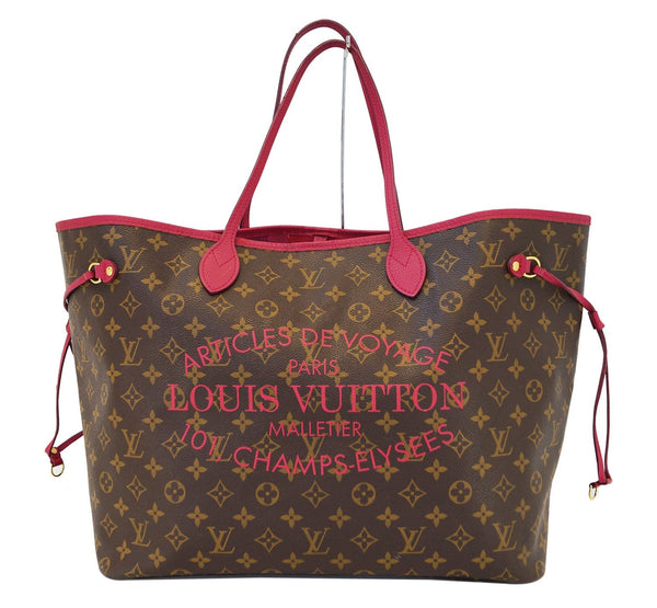 Inspired by the sun-drenched Mediterranean, the Monogram Ikat line features the "Articles de Voyages" motif on the front with Rose Velours calfskin leather trim. The interior is lined with Ikat floral print throughout, to make this a stunning Limited Edition piece that you will cherish for years to come. This GM is the largest size of the LV Neverfull family.