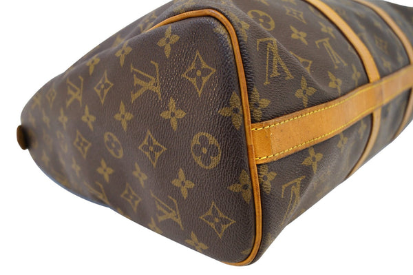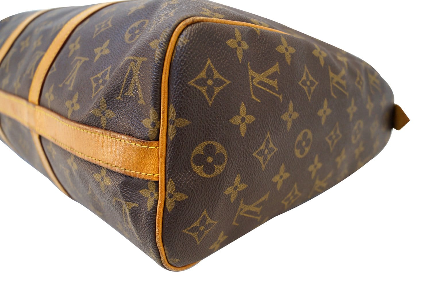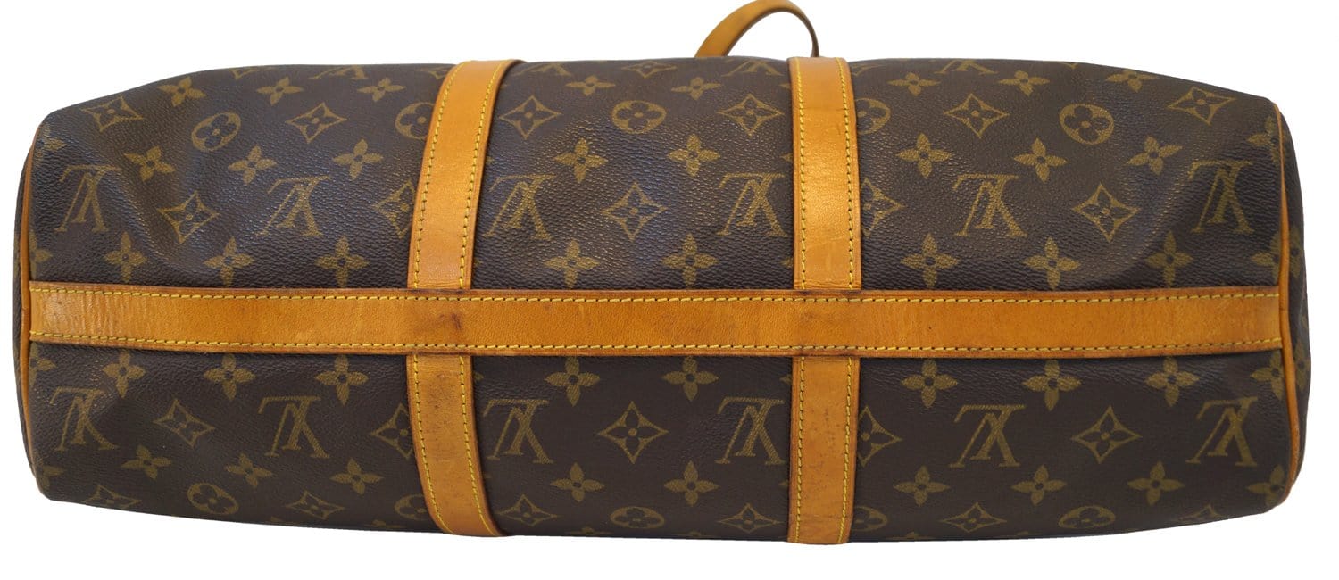 The Louis Vuitton Monogram Canvas Sac Flanerie is a great large shoulder bag that can be used as luggage. With its roomy capacity, it is perfect for taking on a weekend getaway or for toting around while shopping. This discontinued bag is particularly hard to find in the 45 size which is the smaller of the two sizes produced for the Sac Flanerie.