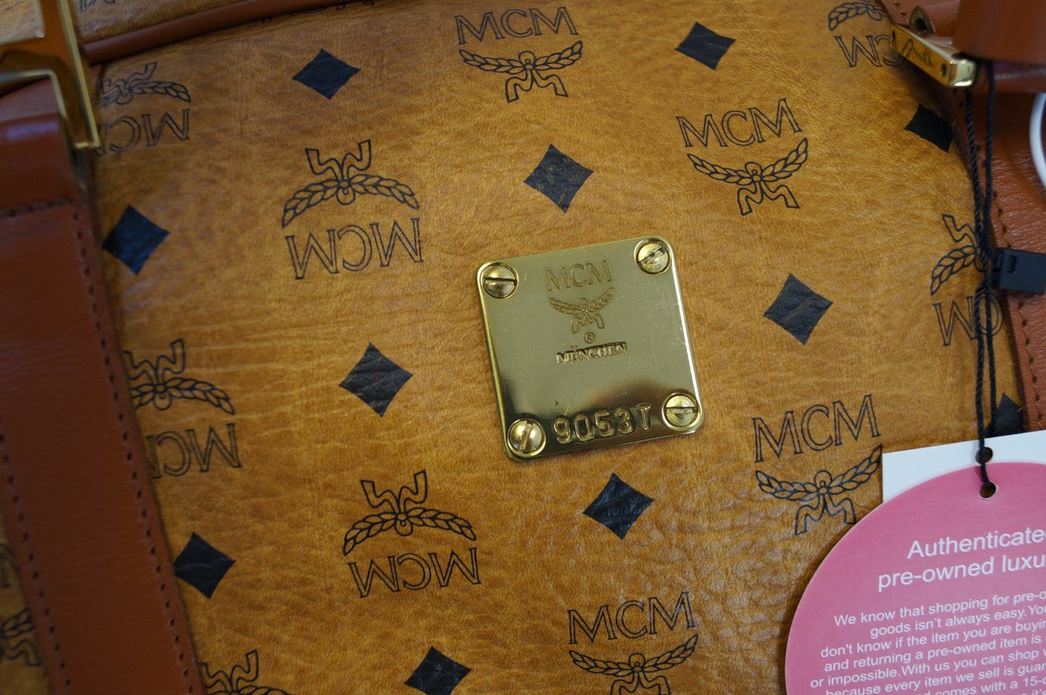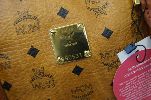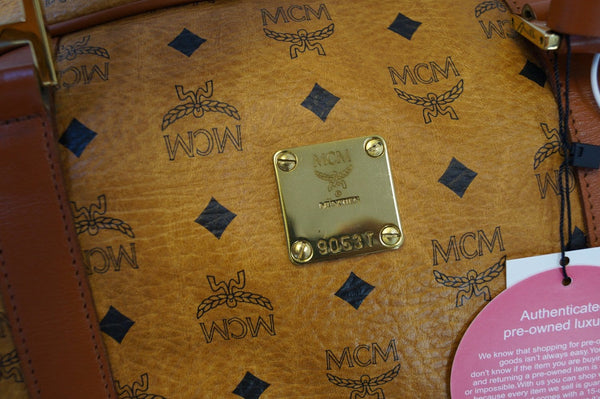 MCM Cognac Visetos Leather Brown Boston Bag Vintage