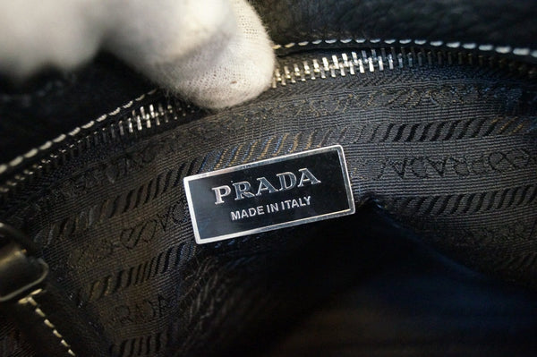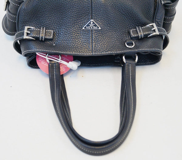 Prada Vitello Daino Black Calfskin Leather Shoulder Bag