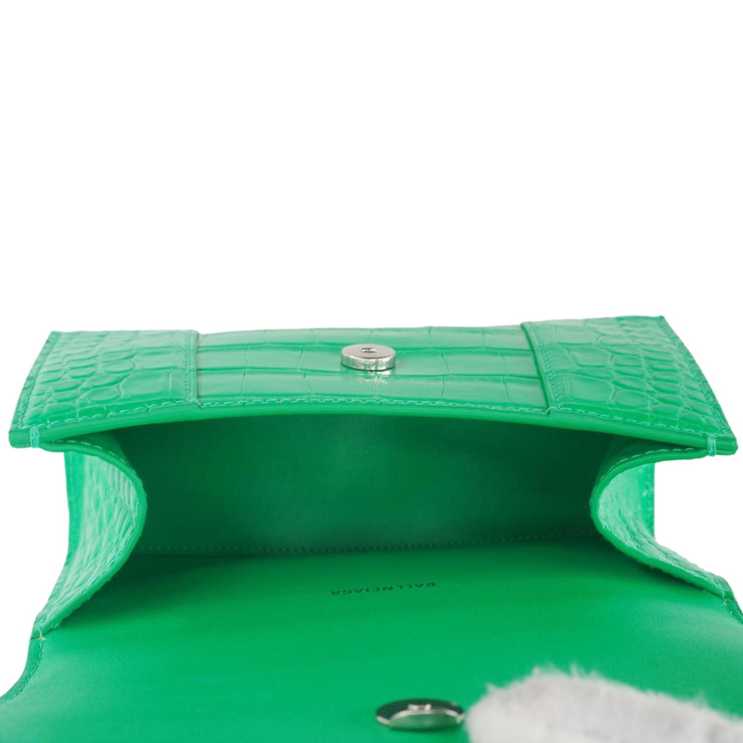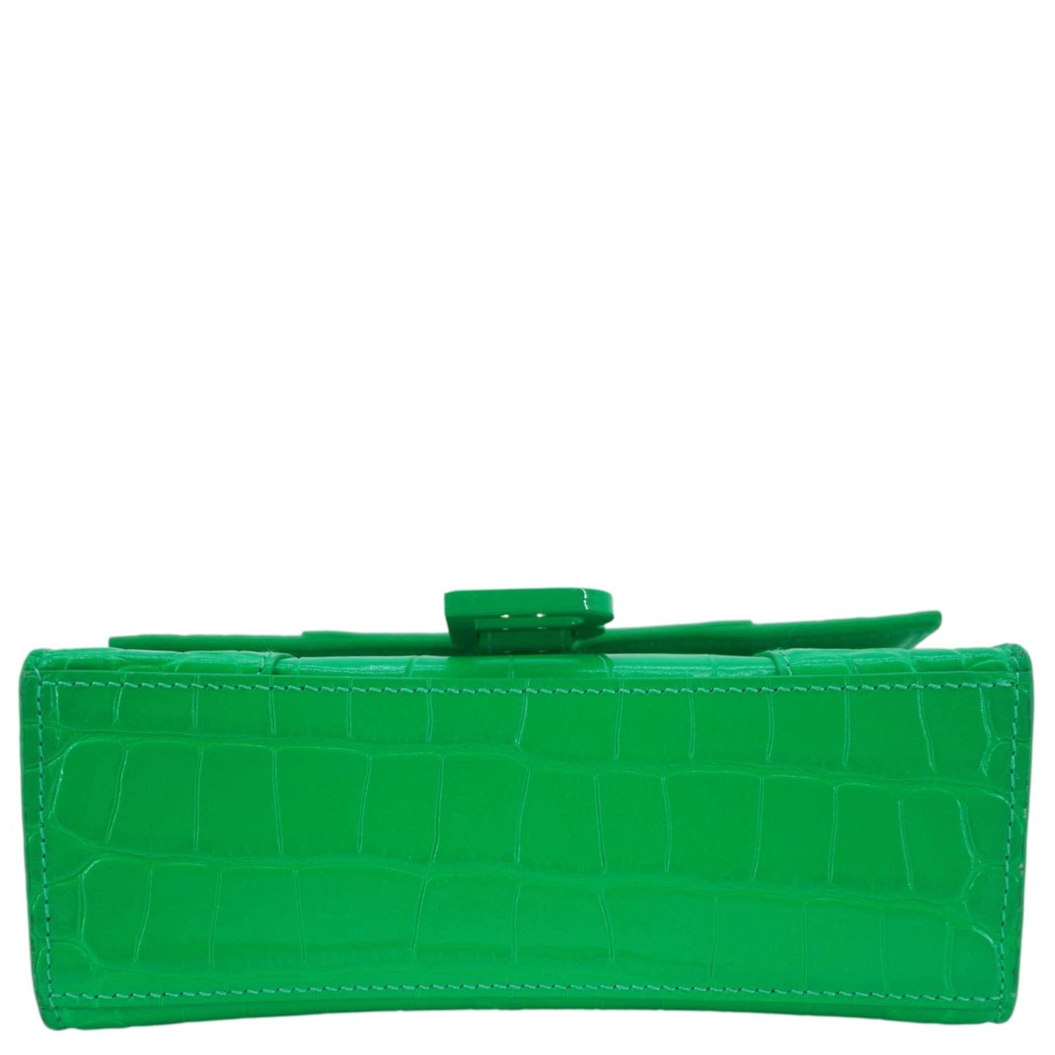 BALENCIAGA Hourglass Leather Tote Crossbody Bag Green