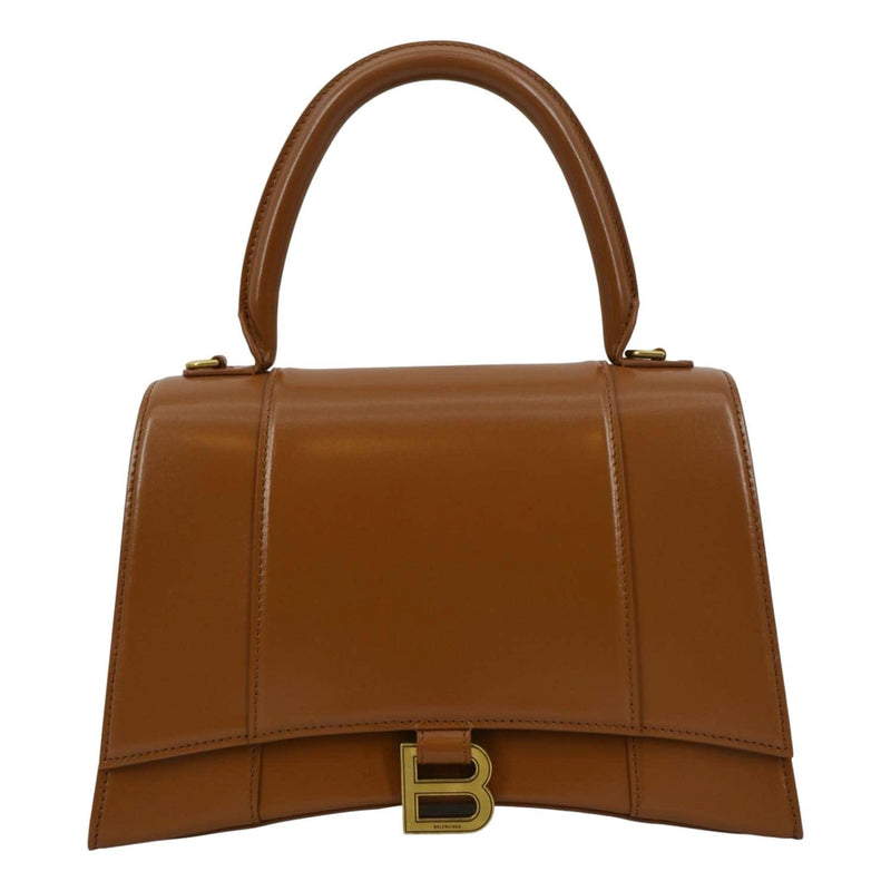 BALENCIAGA Medium Hourglass Leather Top Handle Shoulder Bag Tan