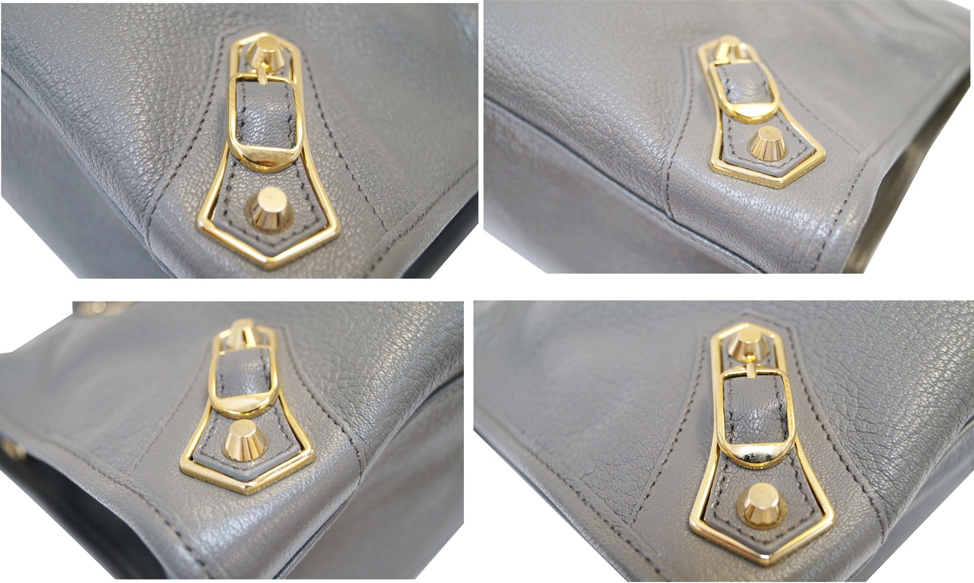 BALENCIAGA Grey Leather Metallic Edge City Shoulder Handbag
