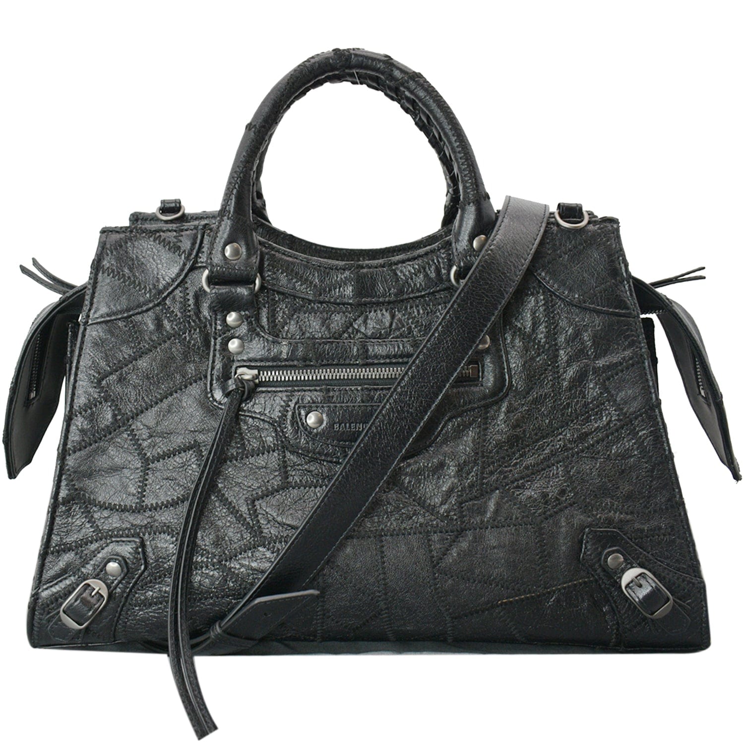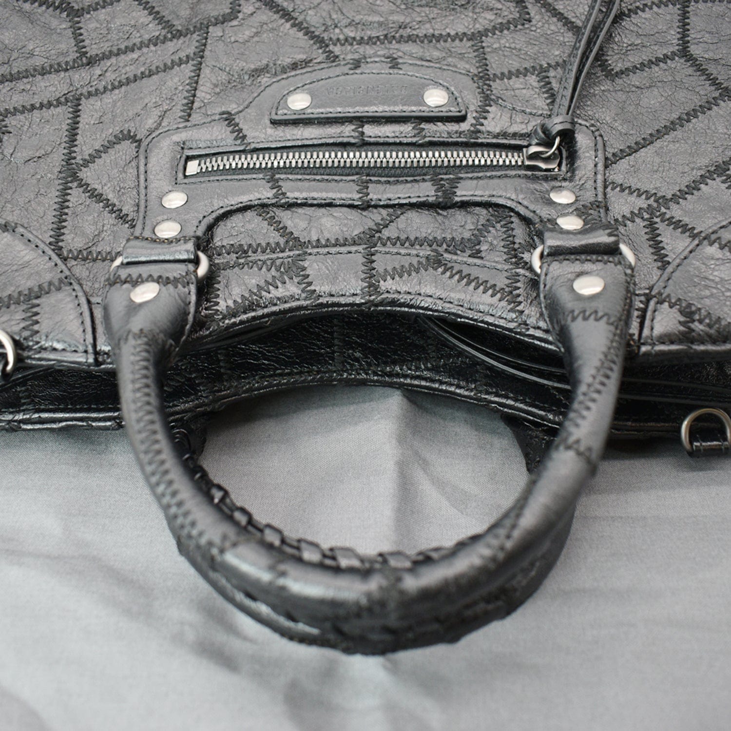 BALENCIAGA Neo Classic Patchwork Leather Top Handle Shoulder Bag Balck
