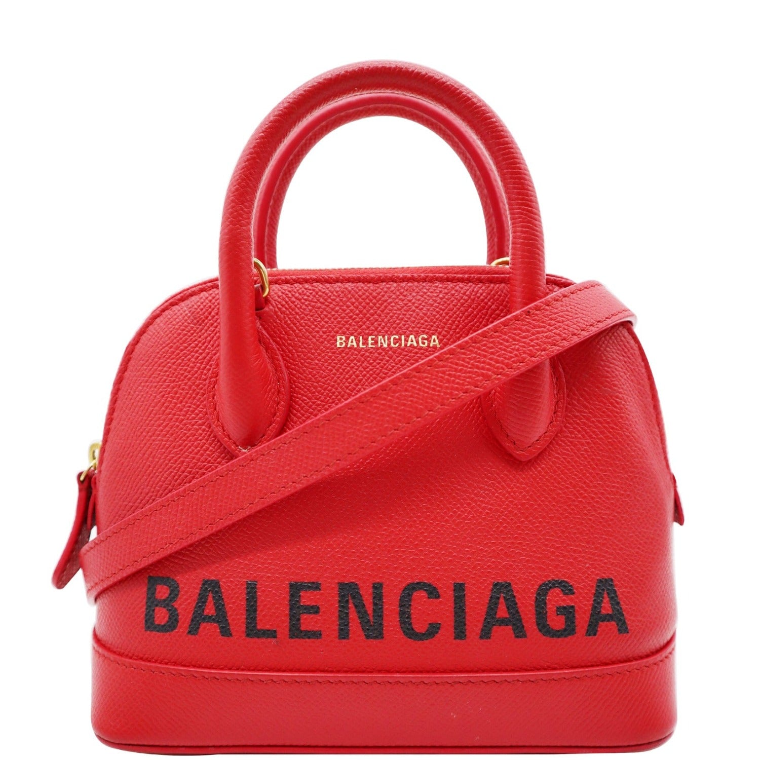 BALENCIAGA Ville Dome Leather Top Handle Crossbody Bag Red