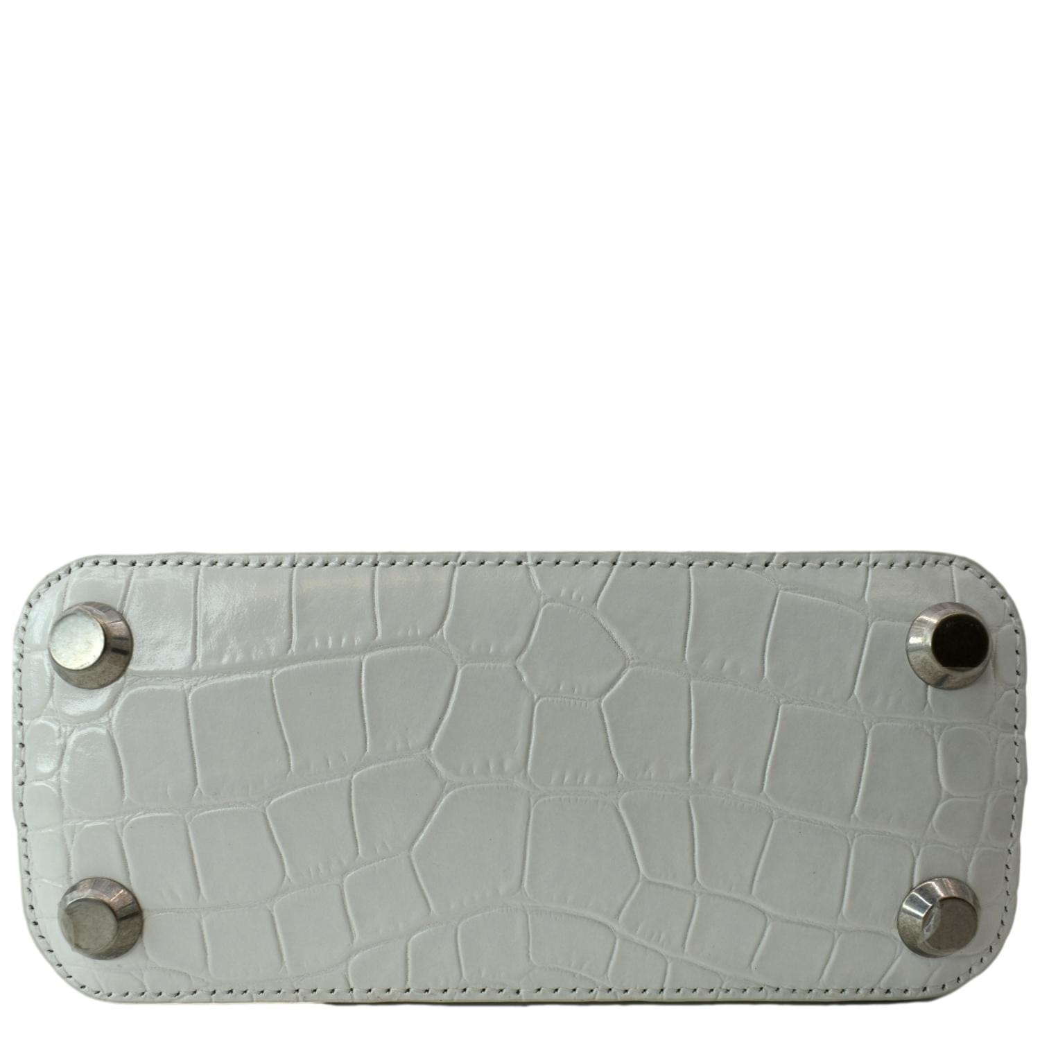 BALENCIAGA Ville Top Handle XXS Crocodile Leather Crossbody Bag White