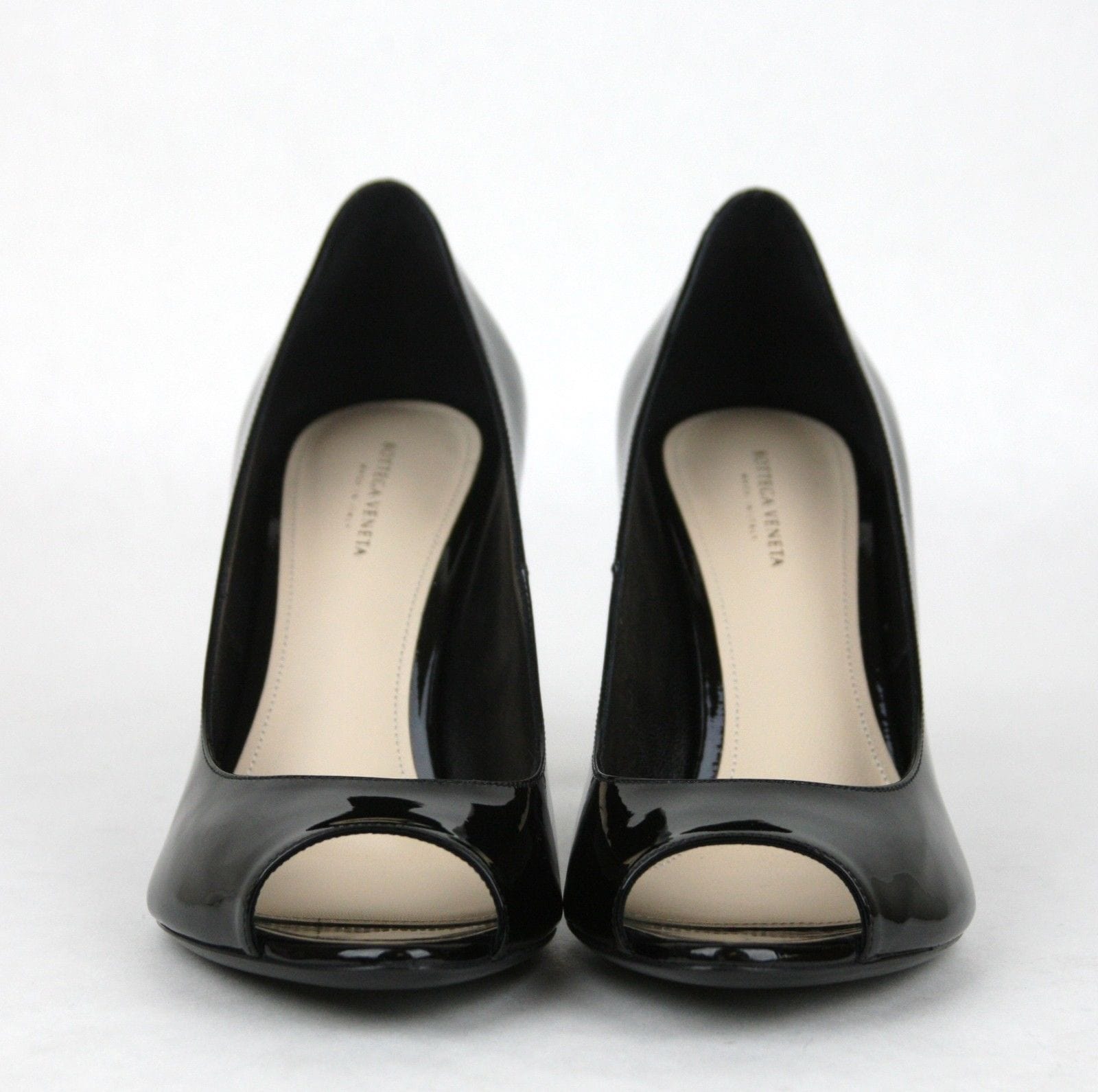 BOTTEGA VENETA Patent Leather Woven Peep Toe Pump Black 9.5 New