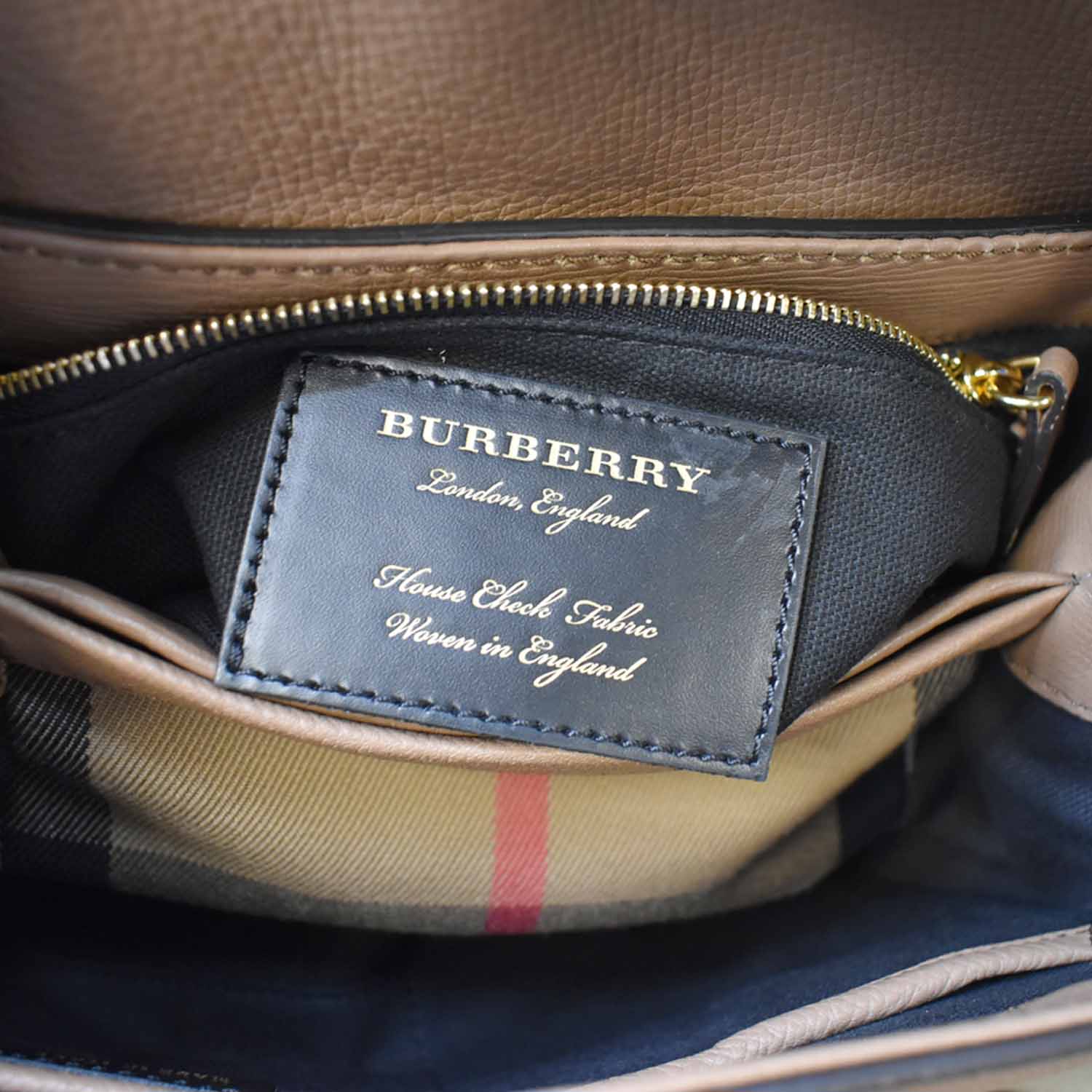 BURBERRY Banner Derby Small House Check Leather Tote Shoulder Bag Pale Taupe