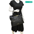 BURBERRY Grainy Calfskin Leather Baynard Medium Black Tote Bag