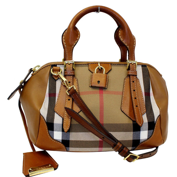BURBERRY Blaze House Check and Leather Shoulder Bag Brown