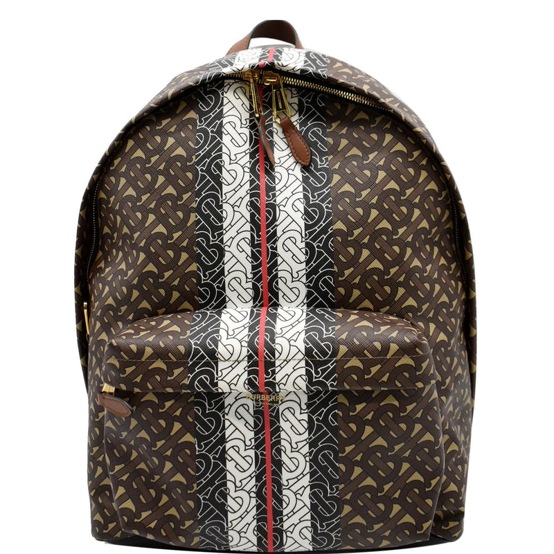 BURBERRY Bridle Stripe Monogram Print E-canvas Backpack Brown