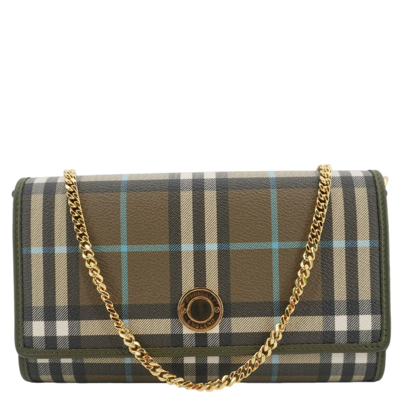 BURBERRY Check Canvas Chain Crossbody Bag Olive Green