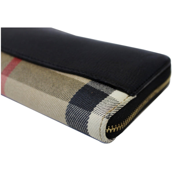 BURBERRY Elmore House Check Calfskin Zip Around Wallet Black