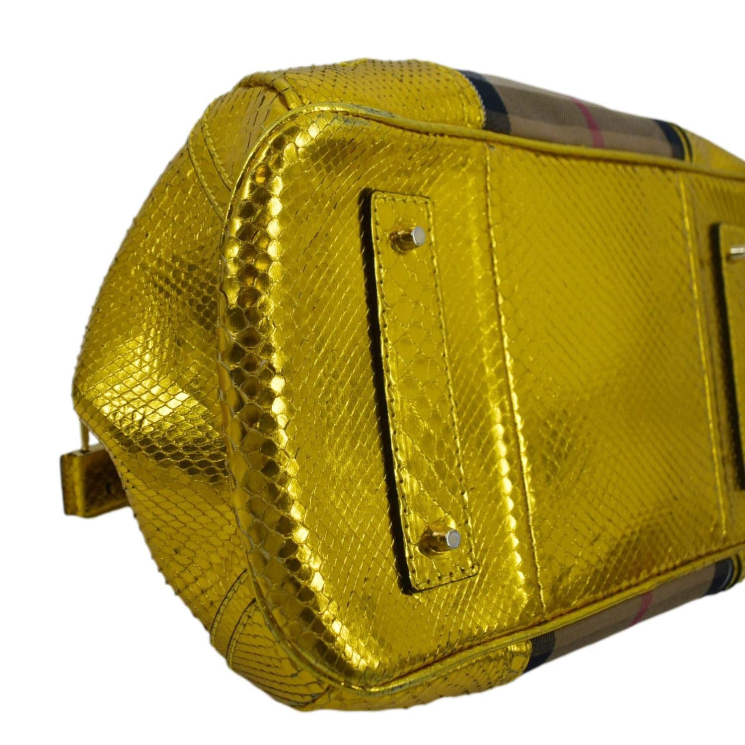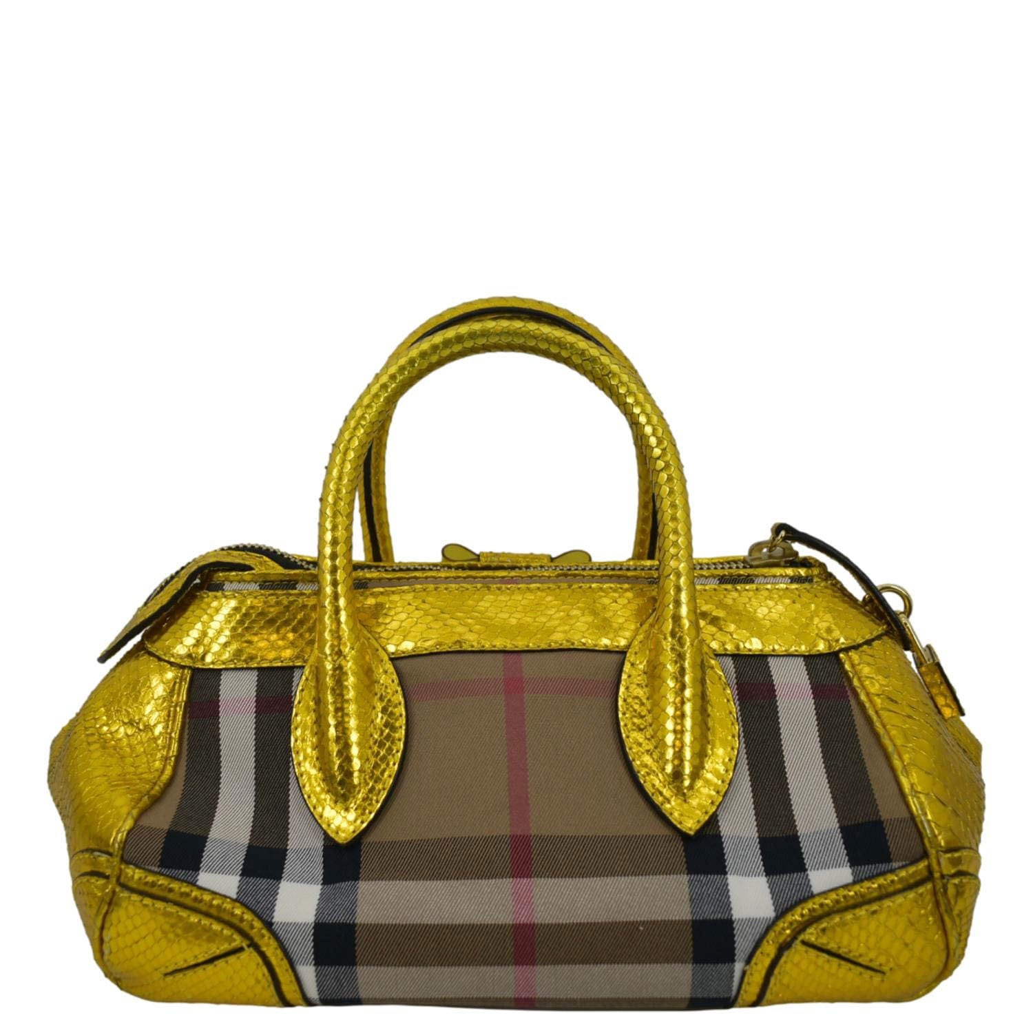 BURBERRY Blaze Nova Check Canvas Satchel Bag Gold