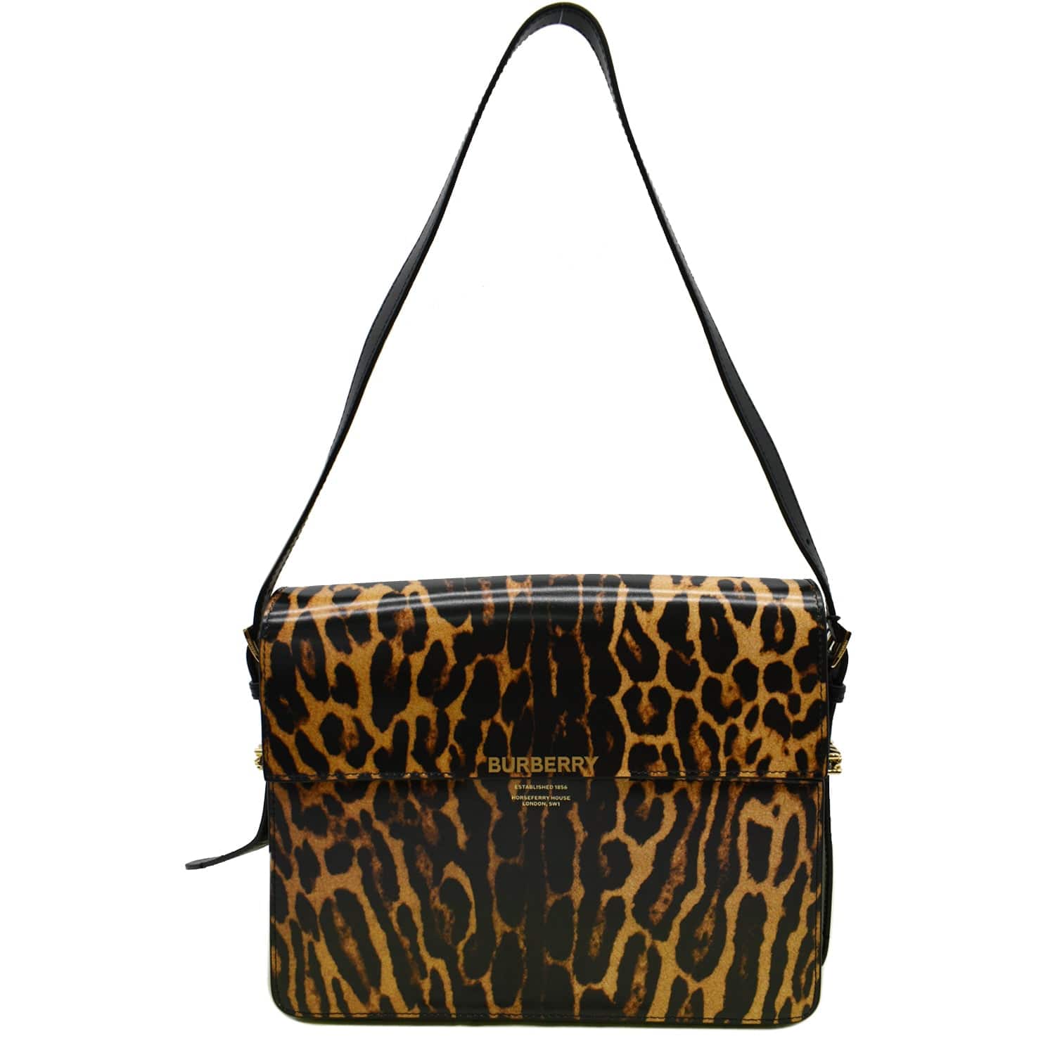 BURBERRY Grace Large Leopard Print Leather Shoulder Bag Multicolor