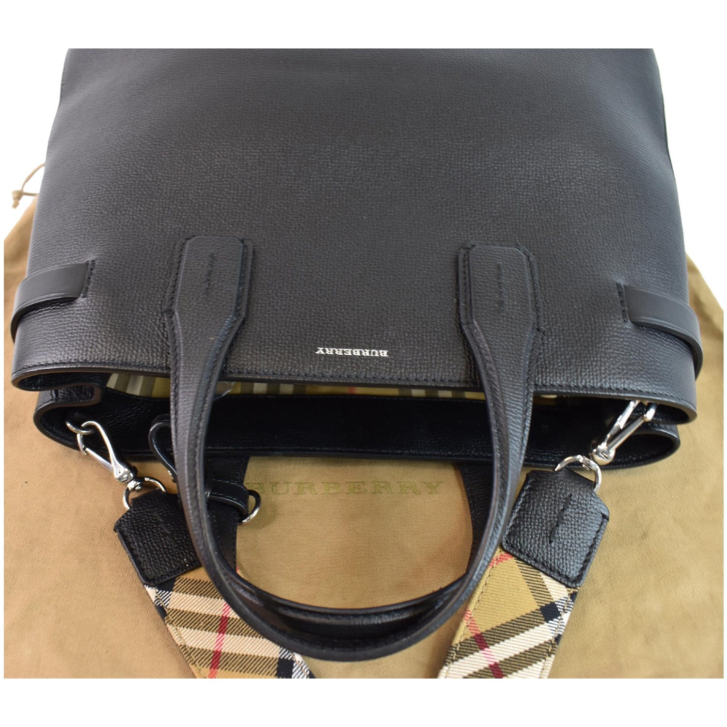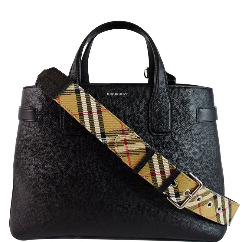 BURBERRY Medium Banner Derby Leather Tote Shoulder Bag Black