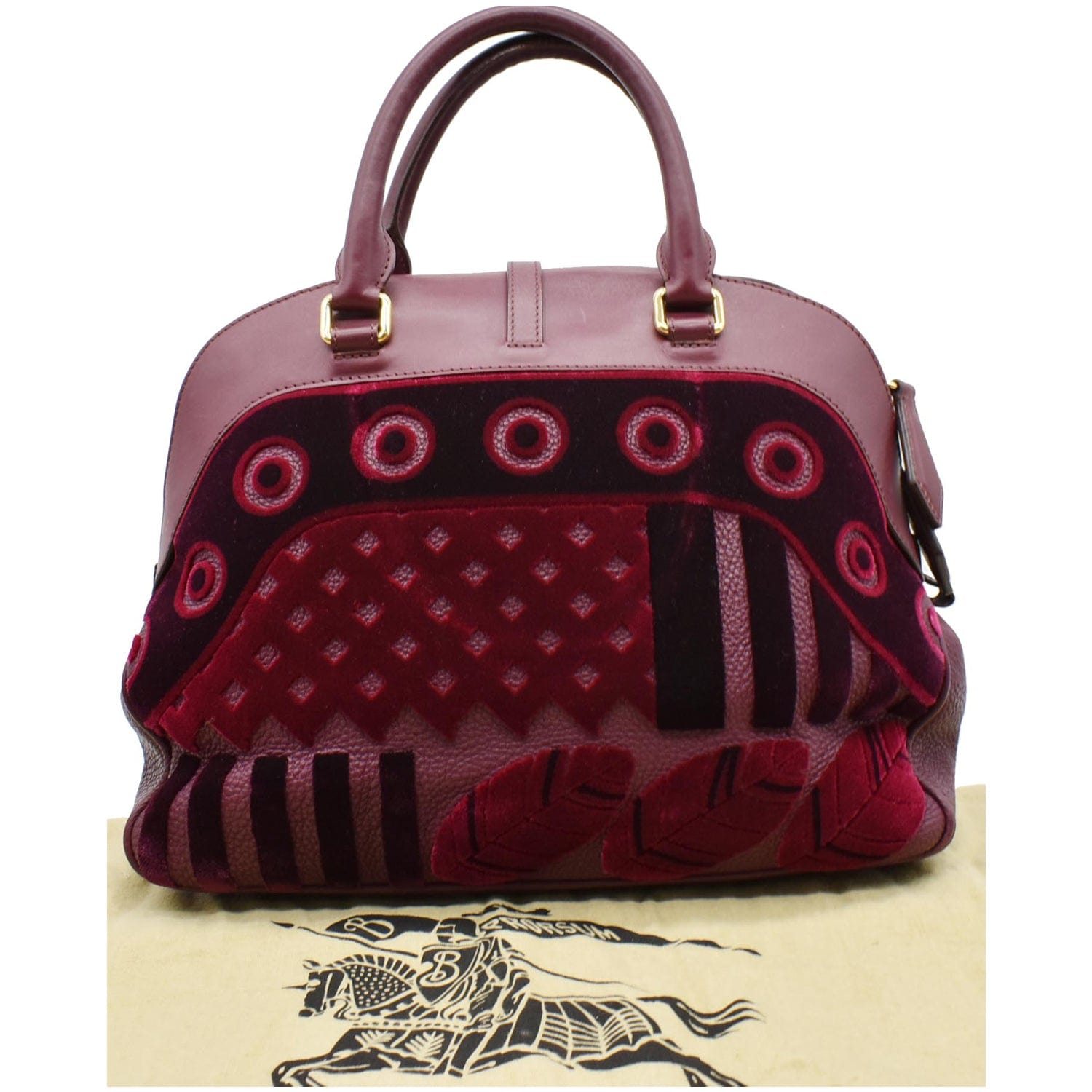 BURBERRY Milverton Large Calfskin Velvet Satchel Bag Burgundy