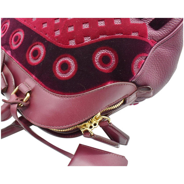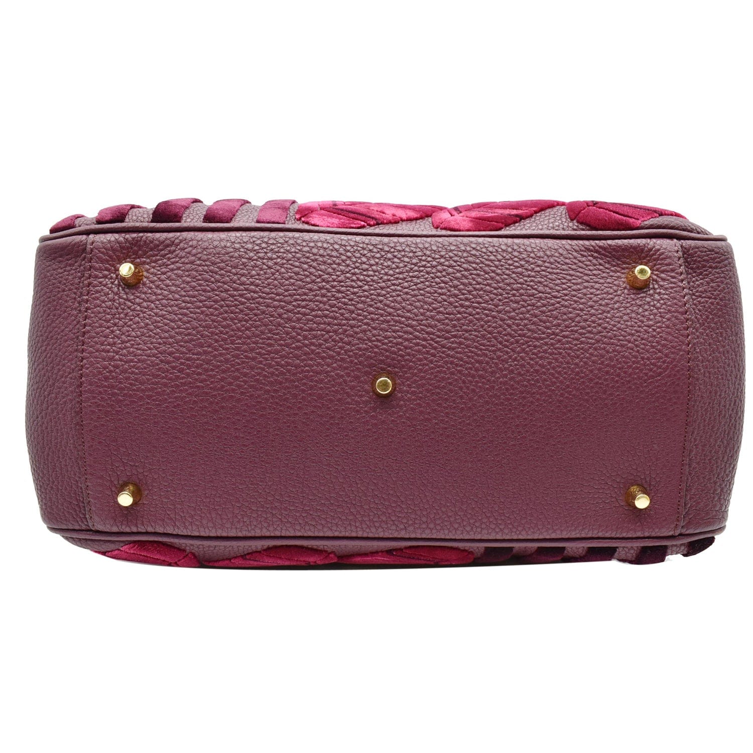 Milverton Large Calfskin Velvet Satchel Bag Burgundy