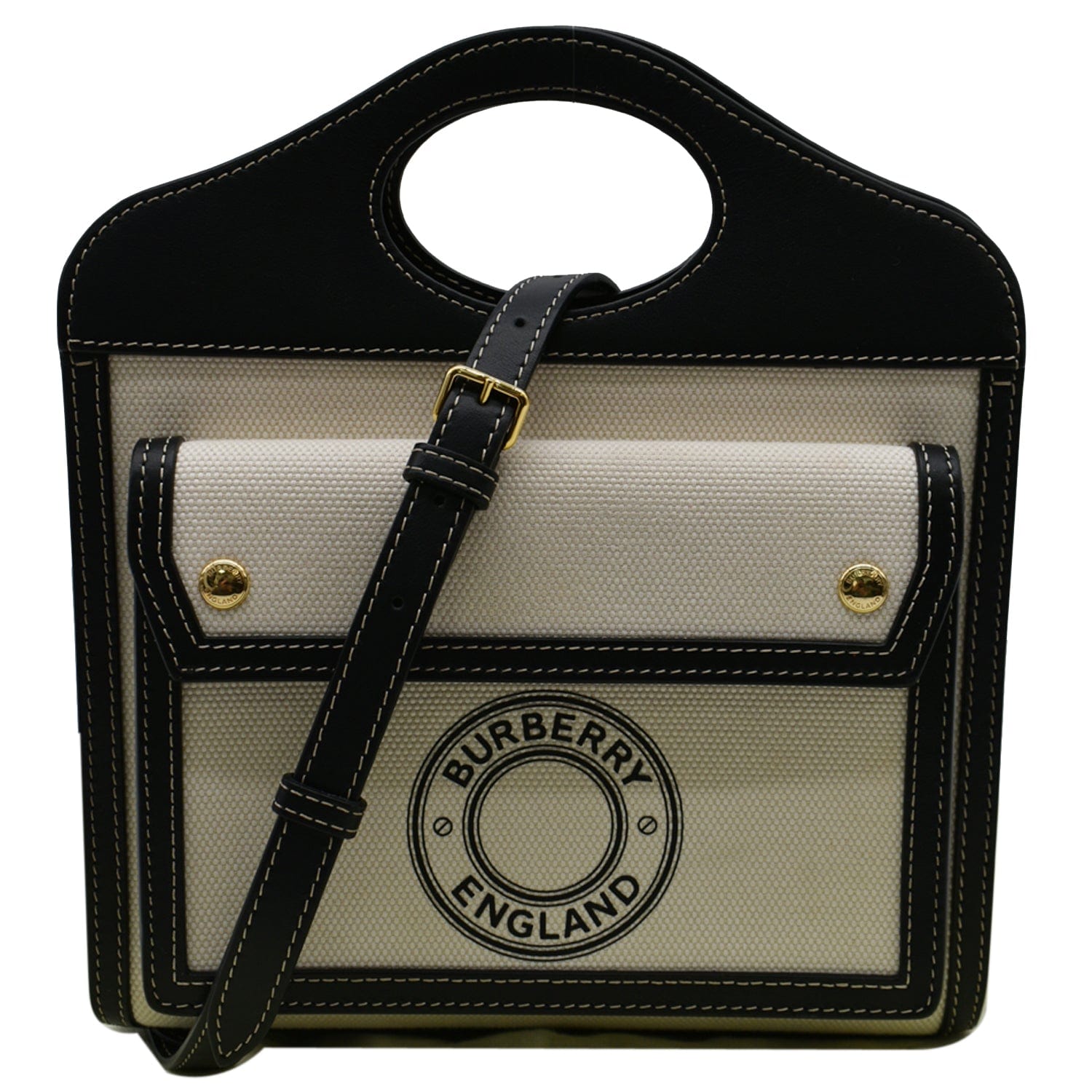 BURBERRY Mini Logo Graphic Canvas Leather Pocket Tote Bag Natural