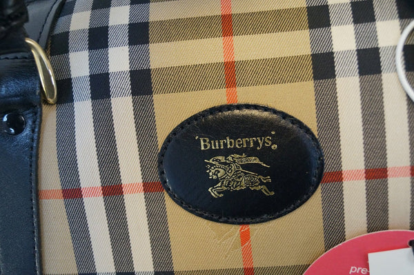 BURBERRY Nova Check Canvas Leather Black Beige Travel Bag TT1182