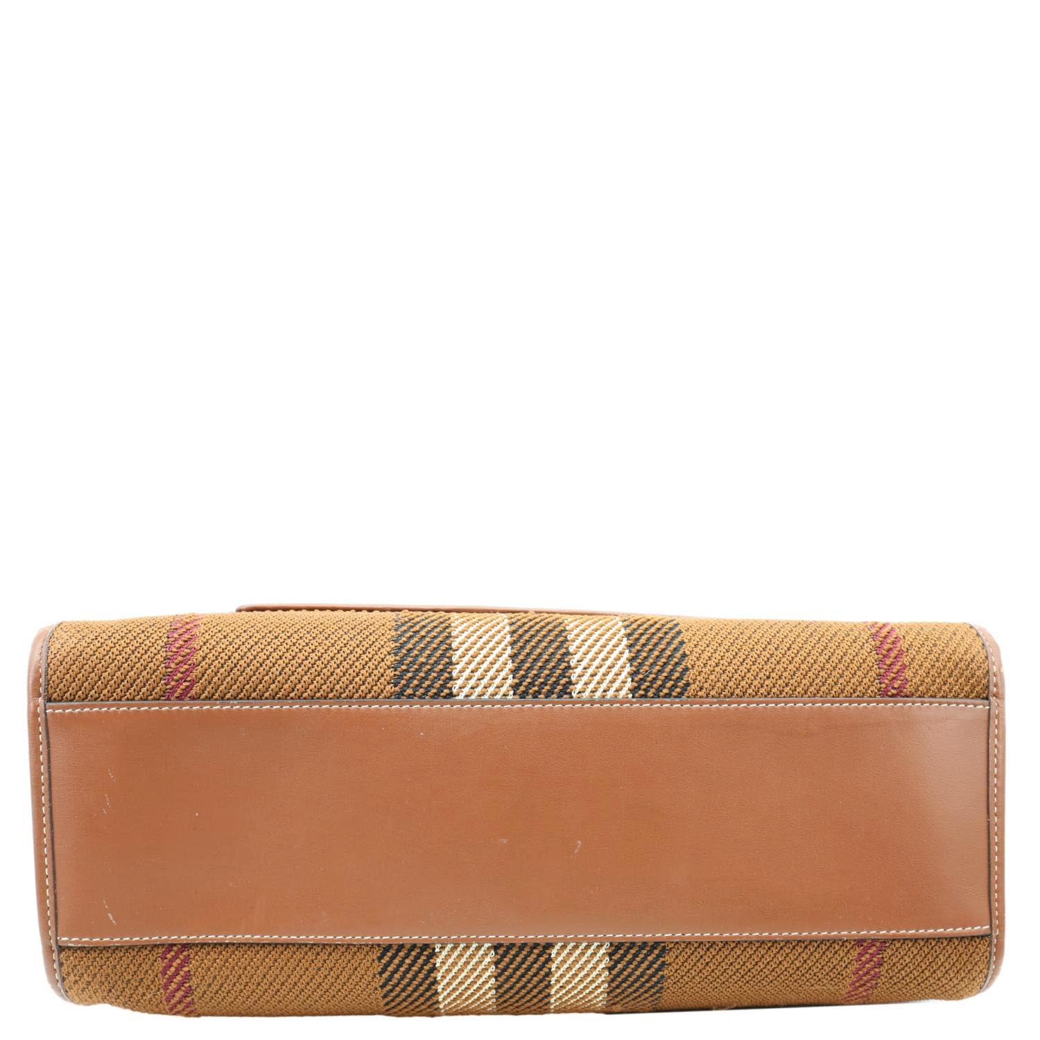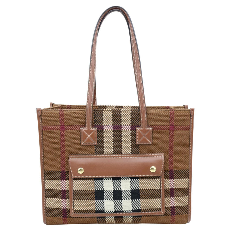 BURBERRY Freya Small Knitted Check Canvas Tote Bag Brown