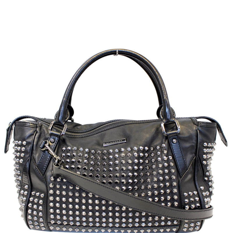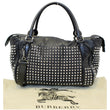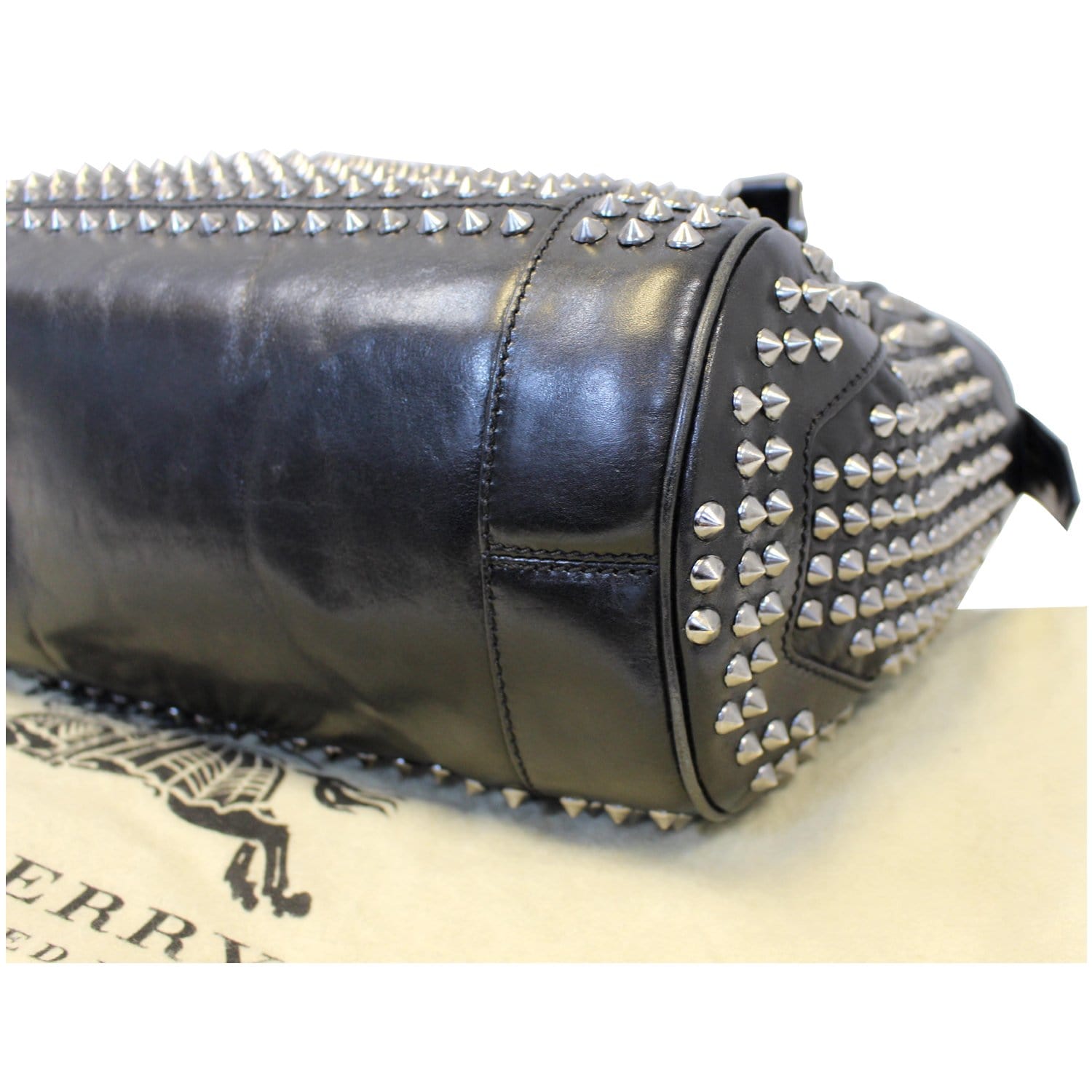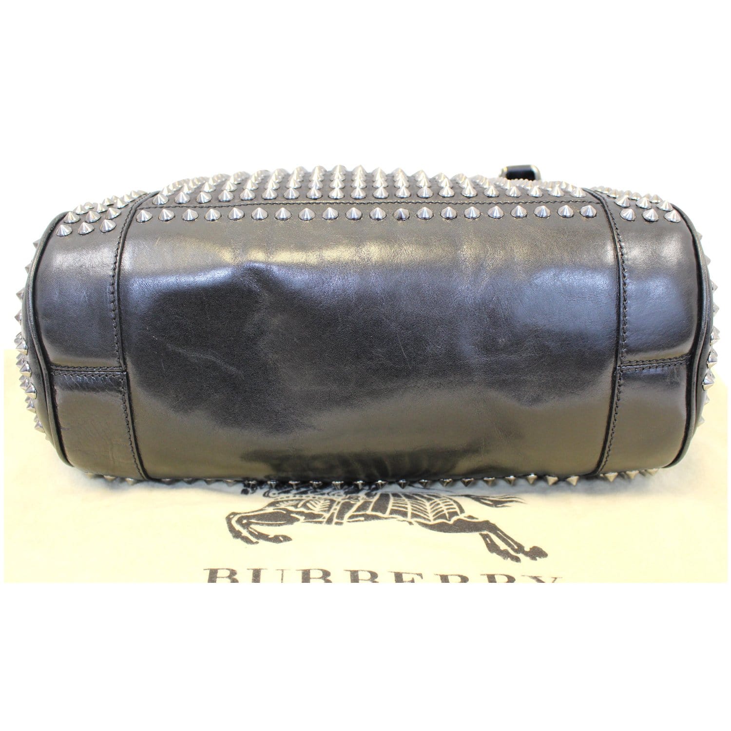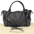 BURBERRY Studded Leather Satchel Shoulder Bag Black