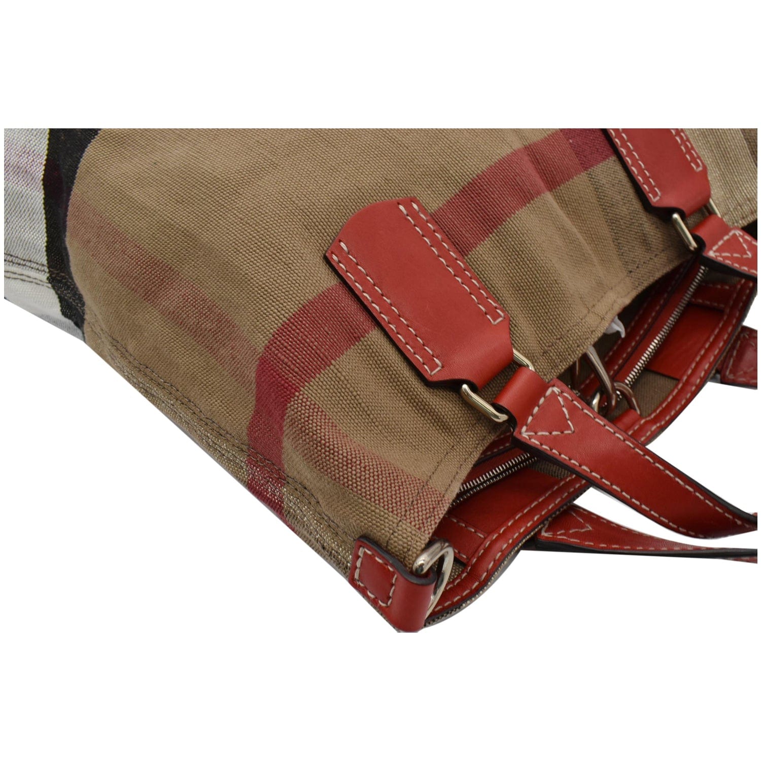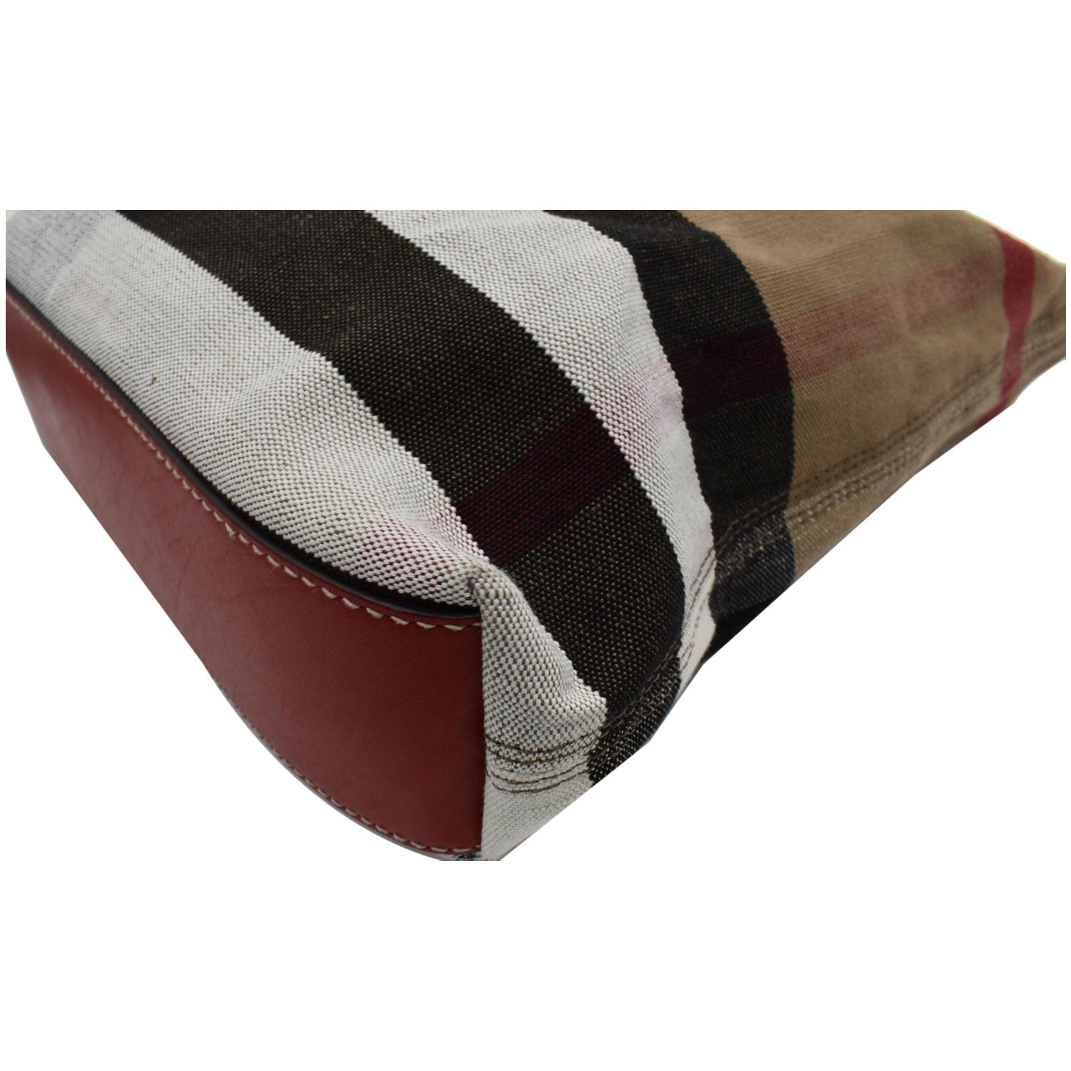 BURBERRY Susanna Medium Check Canvas Leather Bucket Shoulder Bag Red