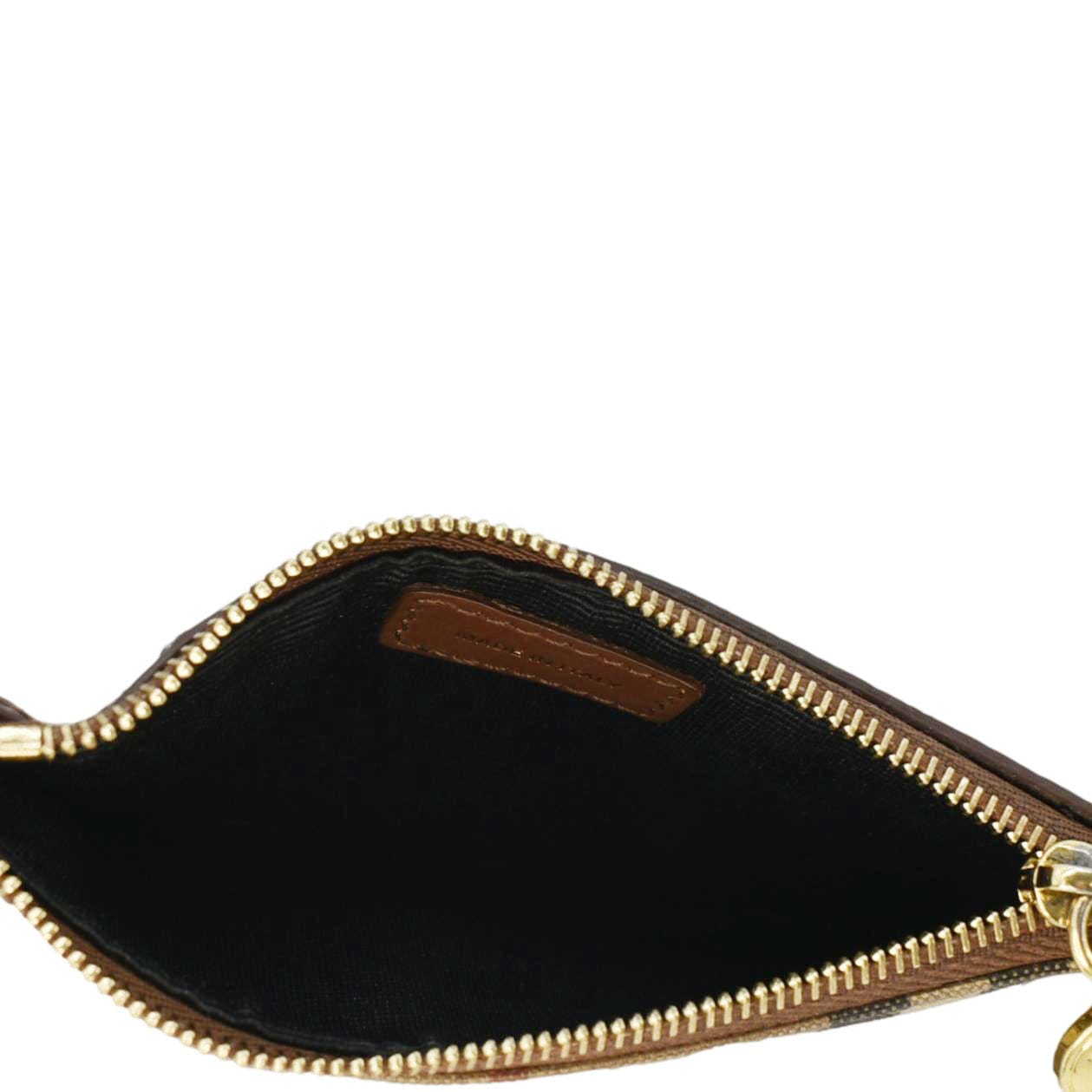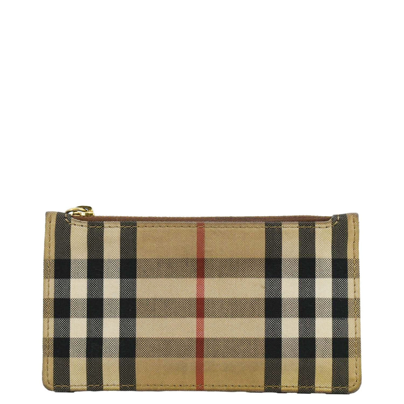 The beige Burberry Vintage Check Canvas Coin Case Card Holder combines the iconic check pattern with functional storage, including card slots and a zippered coin pocket. Its compact design and signature style make it a versatile everyday accessory.