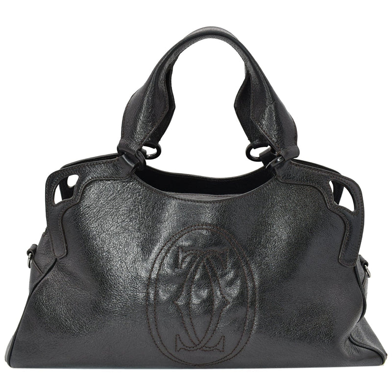 CARTIER Marcello de Cartier Leather Large Shoulder Bag Black