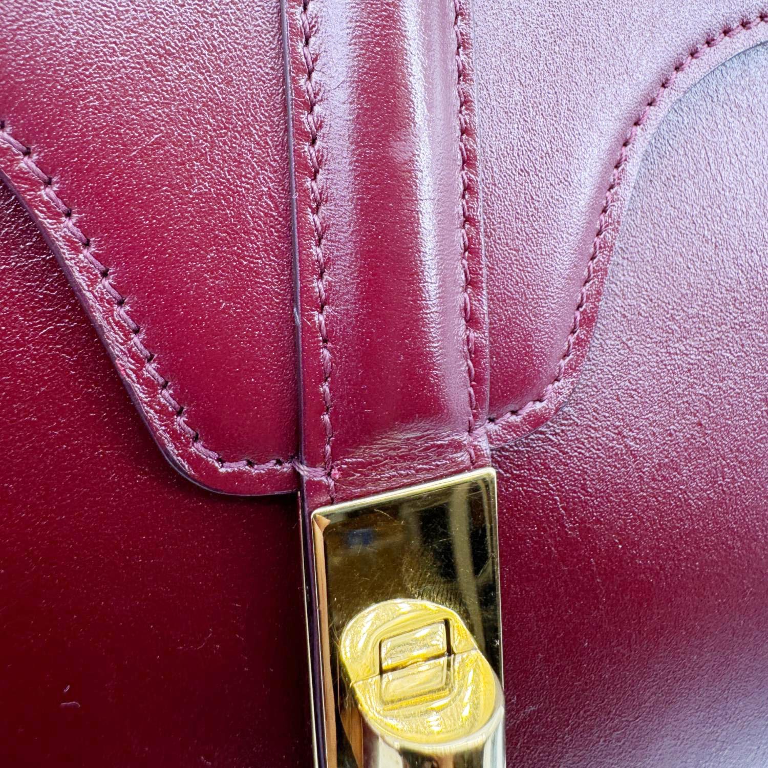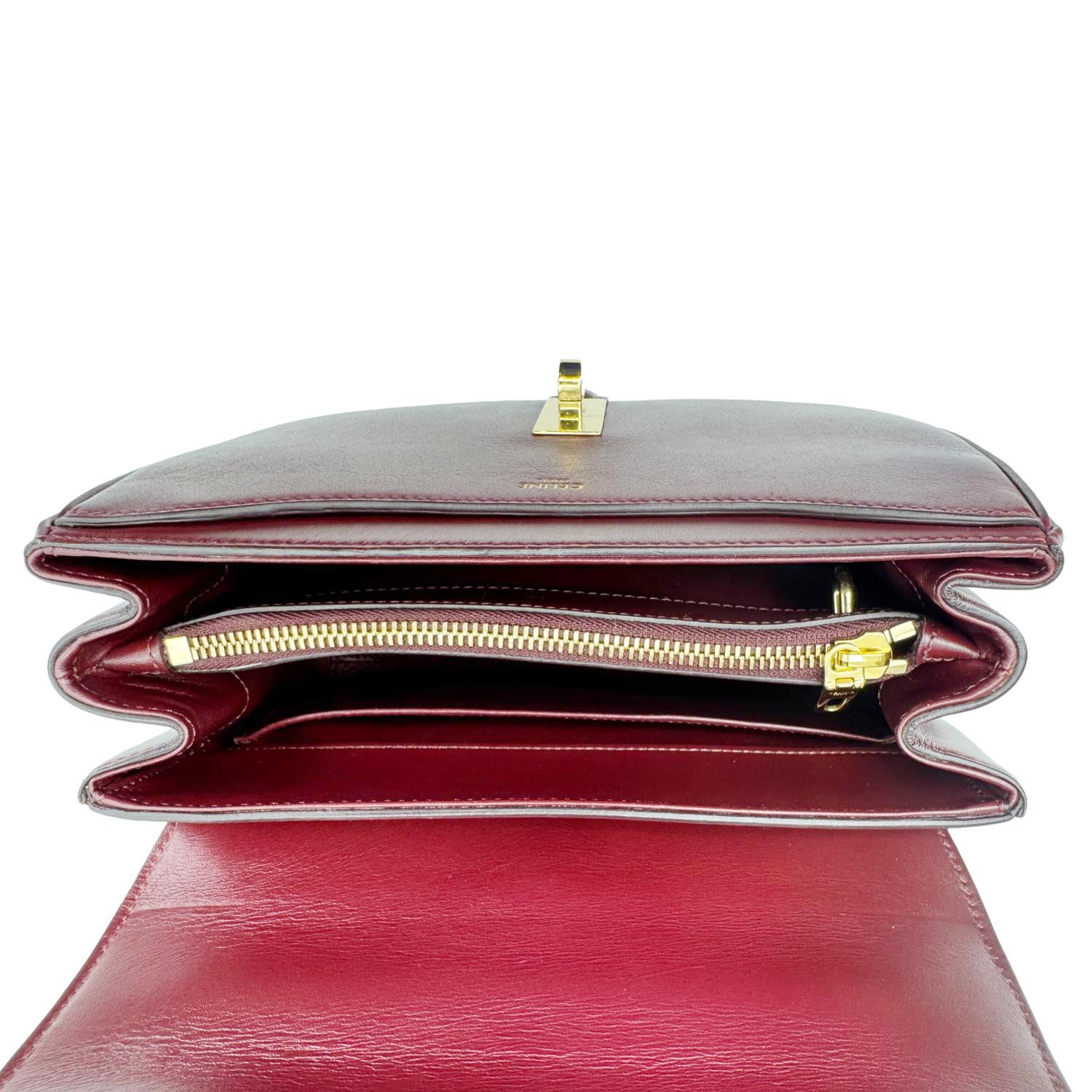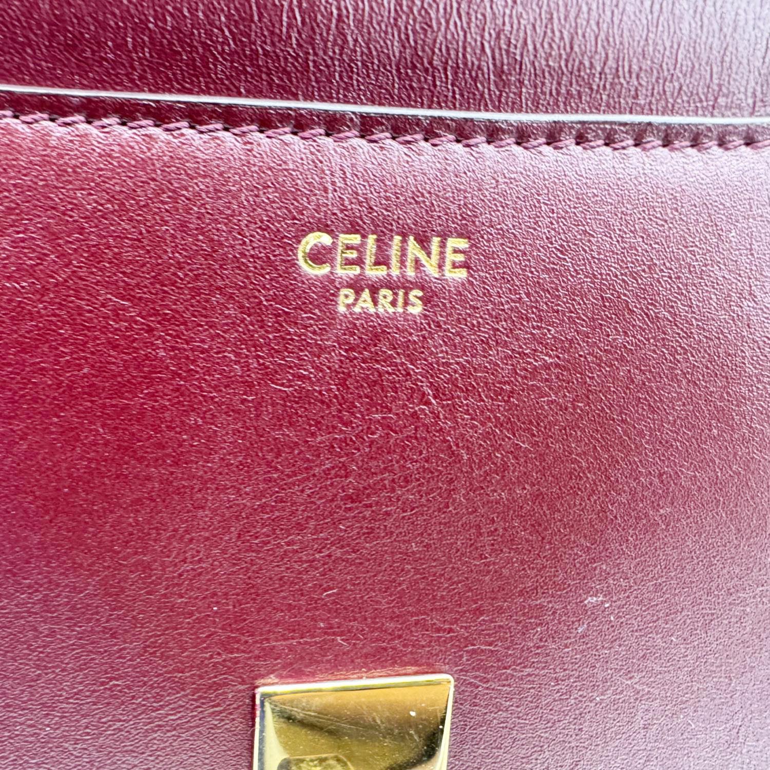 CELINE 16 Small Satinated Leather Top Handle Shoulder Bag Burgundy