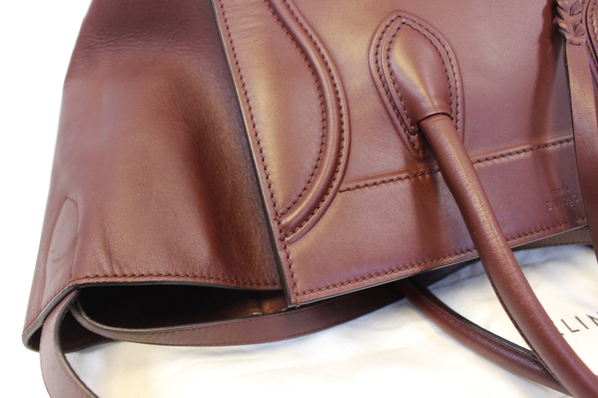 CELINE Burgundy Leather Medium Phantom Luggage Tote Bag.