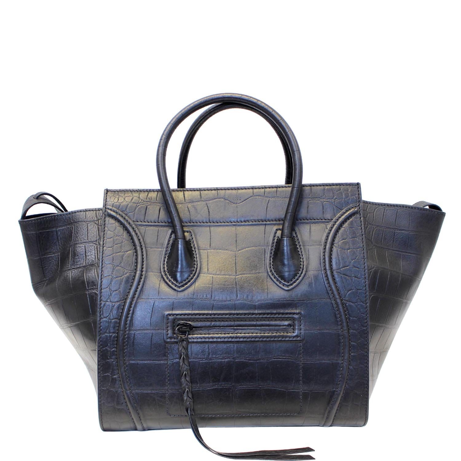 CELINE Croc Stamped Embossed Leather Medium Phantom Luggage Tote Bag
