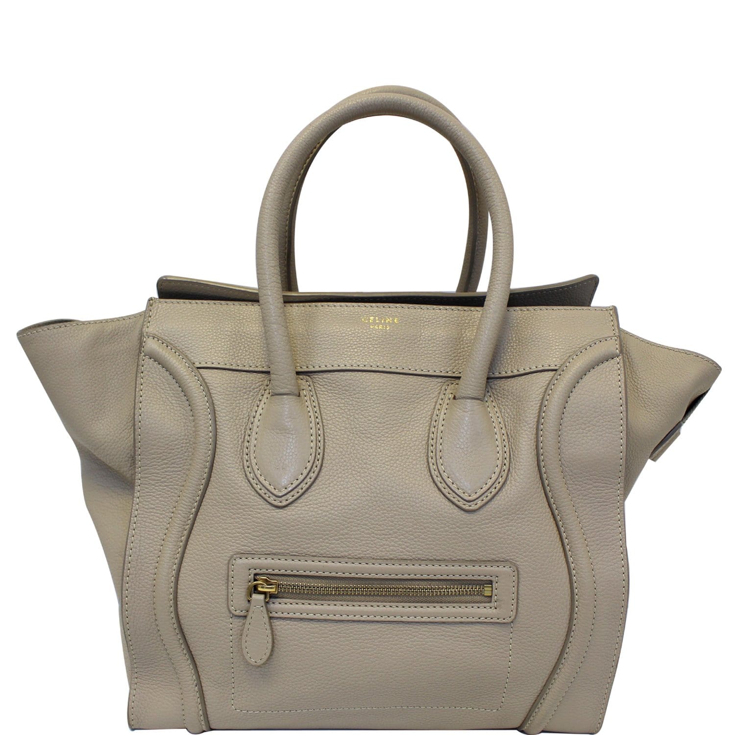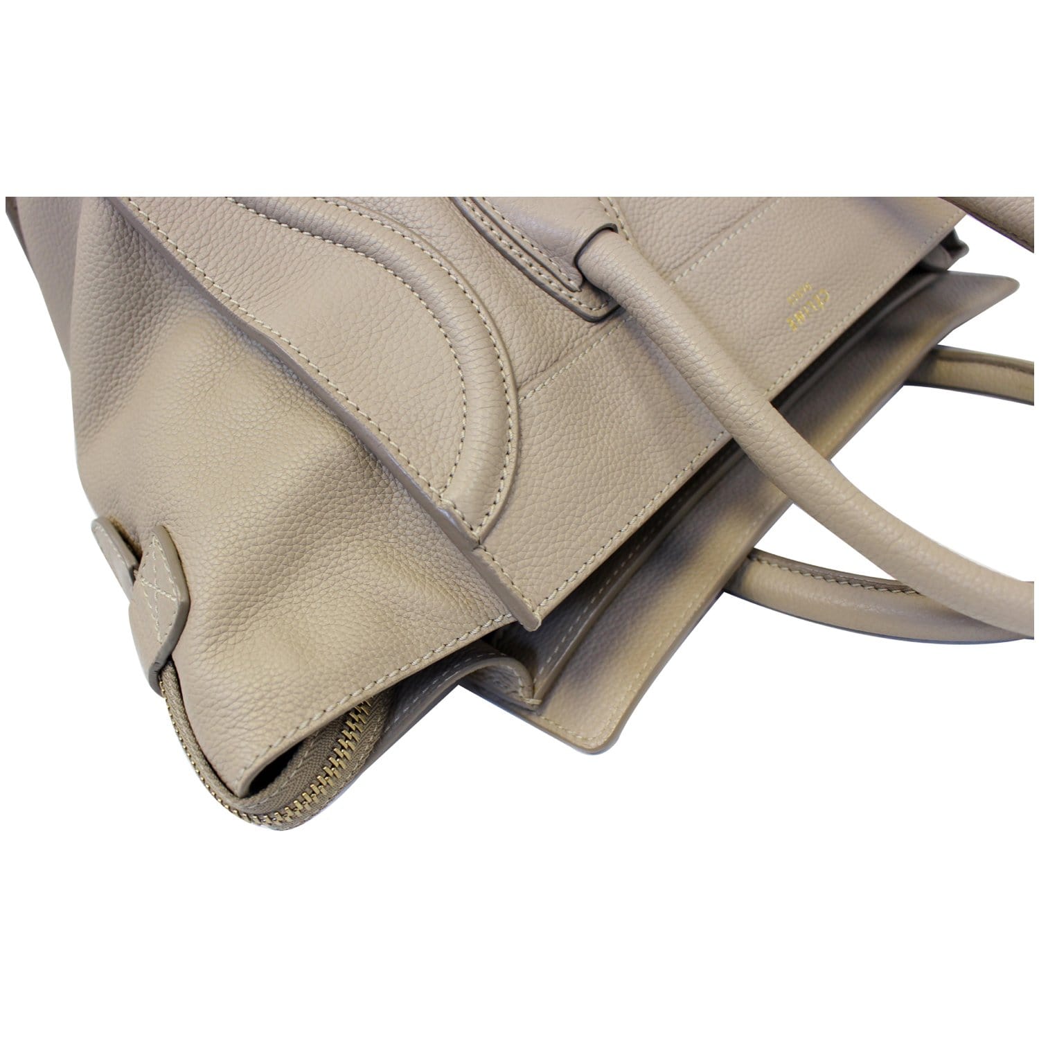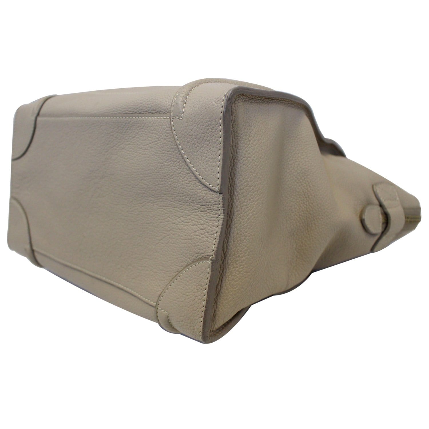 Celine Drummed Calfskin Leather Mini Luggage Tote Bag Dune