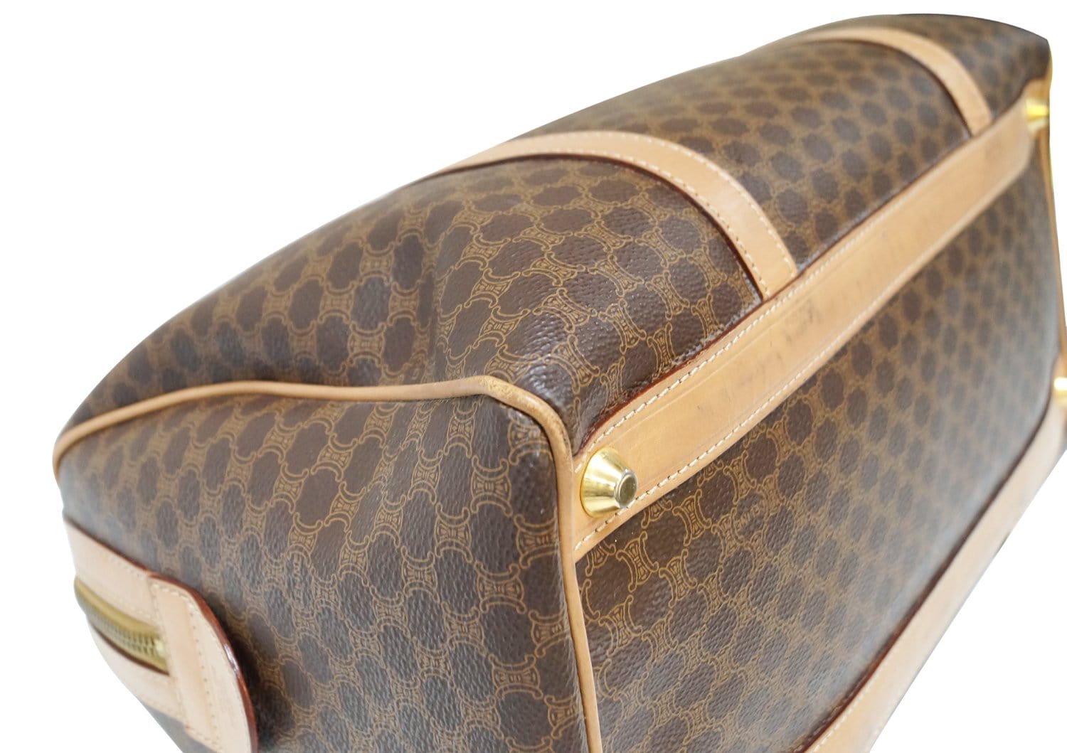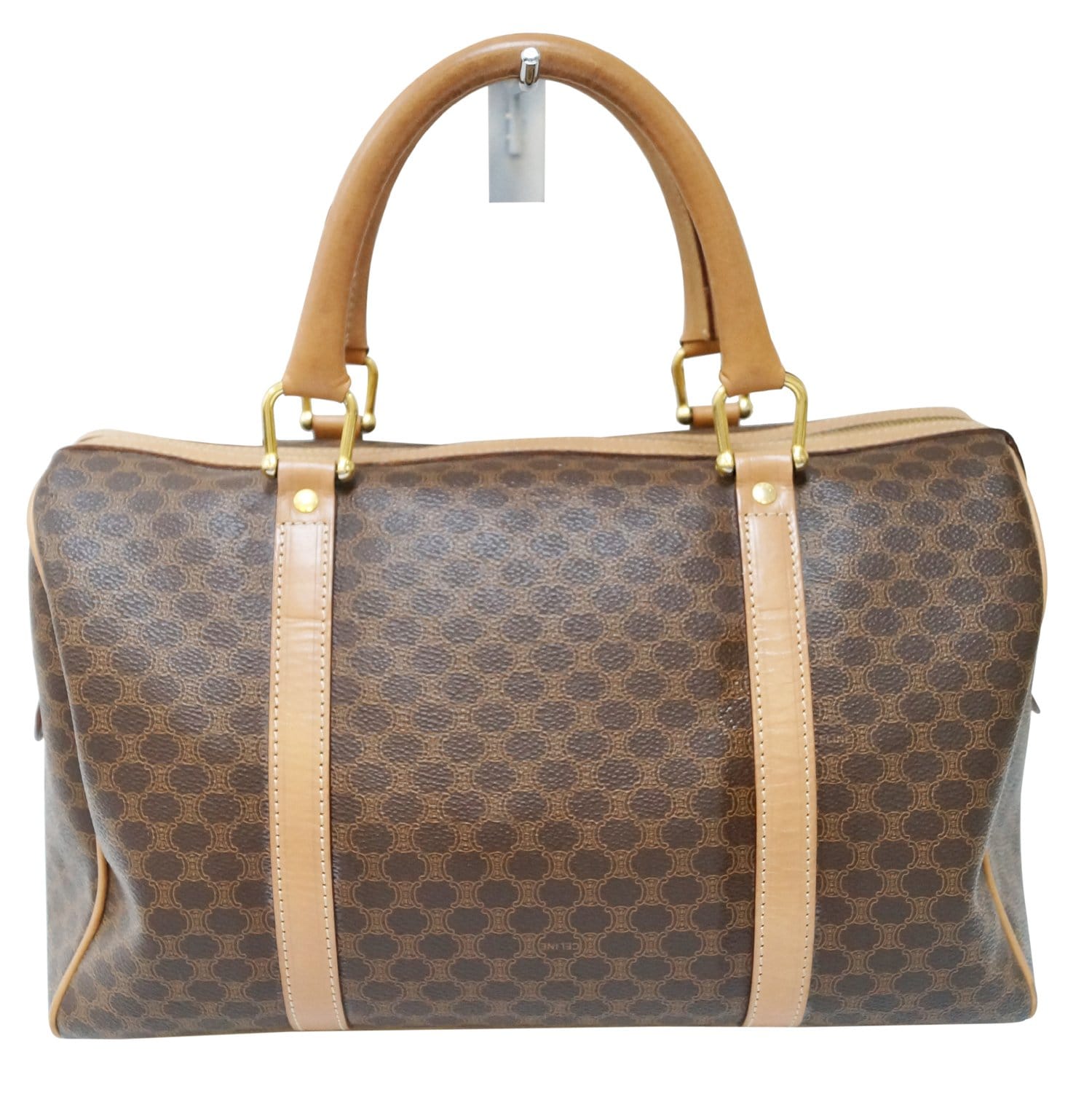 CELINE Macadam Pattern PVC Leather Brown Satchel Bag