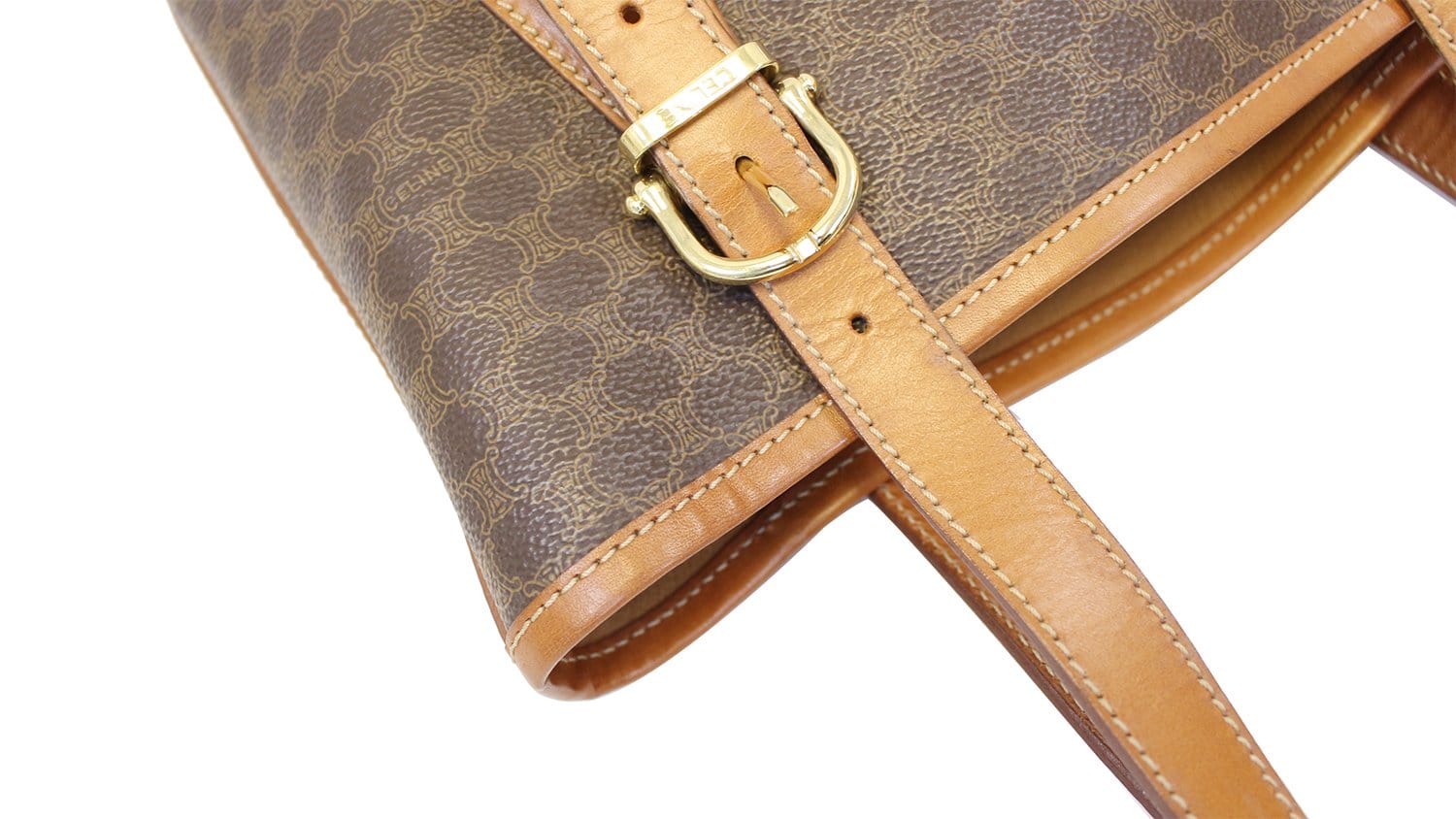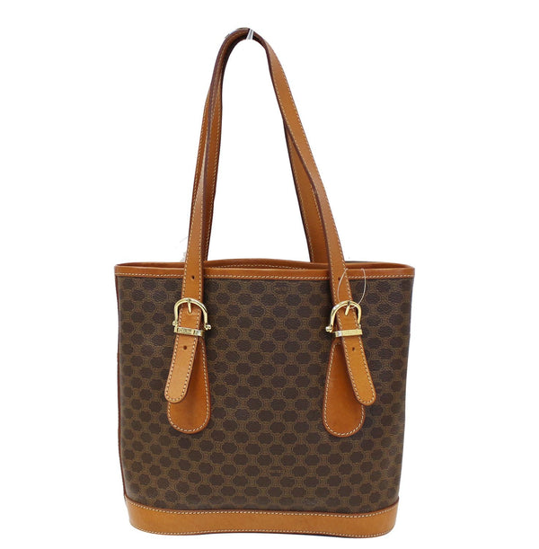 CELINE Macadam Pattern PVC Leather Brown Shoulder Bag